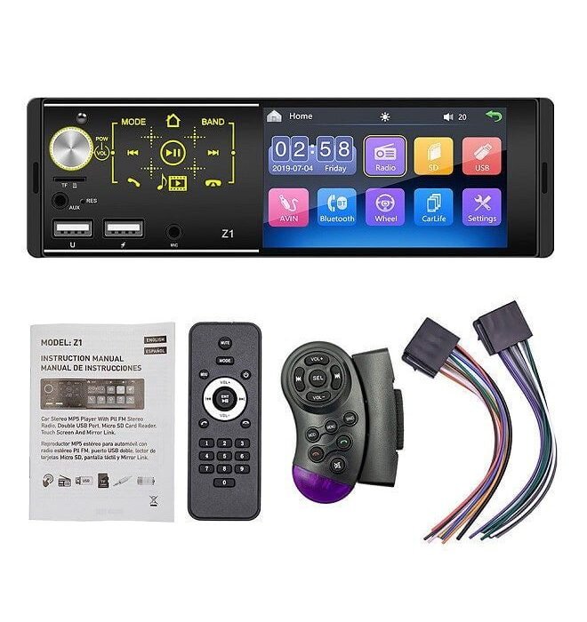 4.1 Inch Single Din Car Stereo BT Touchscreen MP5 Player FM Radio Receiver Support TF/USB/AUX-IN Hands-Free Calling Reverse Picture Steering Wheel Control