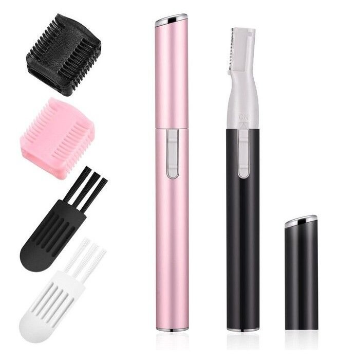 Chumia 2 Pieces Electric Eyebrow Trimmer Women Precision Face Razors Mini Shaver Battery Operated Small Facial Hair Remover With Comb Personal Epilator For Face Neck Fuzz Lips Body Arms Leg (Pink Black)