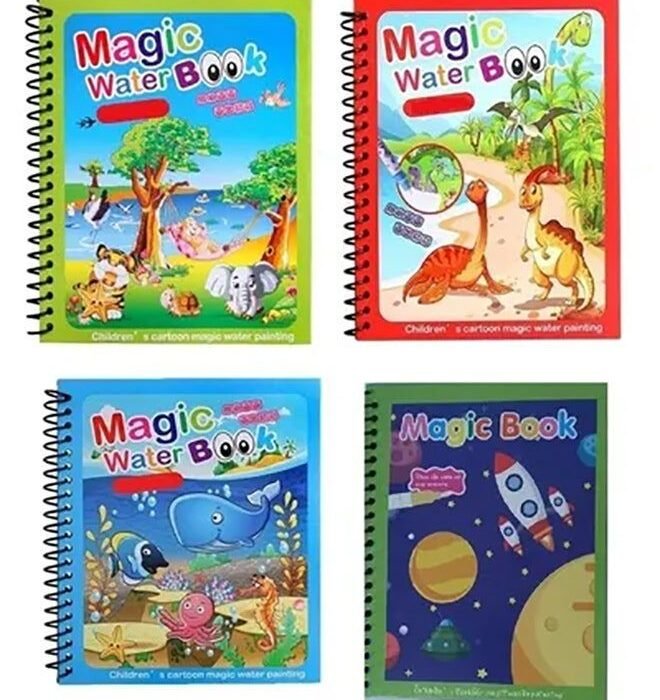 Generic 4-Piece Cartoon Water Coloring Magic Book With Water Pen For Toddlers And Kids