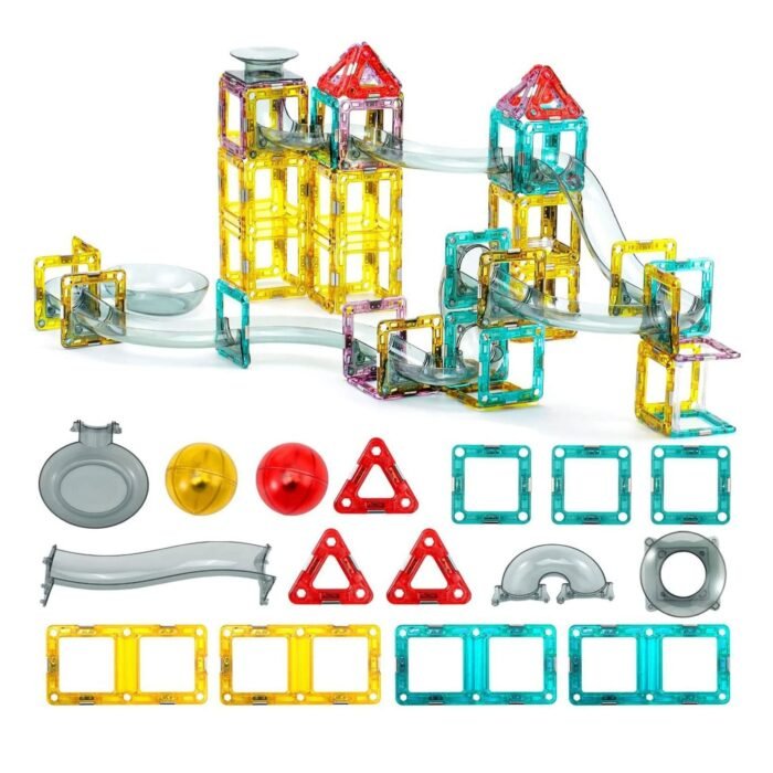 Arabest Marble Run Magnetic Tile, Magnetic Building Blocks for Kids, Magnetic Tiles Marble Run Race Track Stacking Toys, Preschool Educational Toys, Gifts for Boys Girls Age 3+(74pcs)