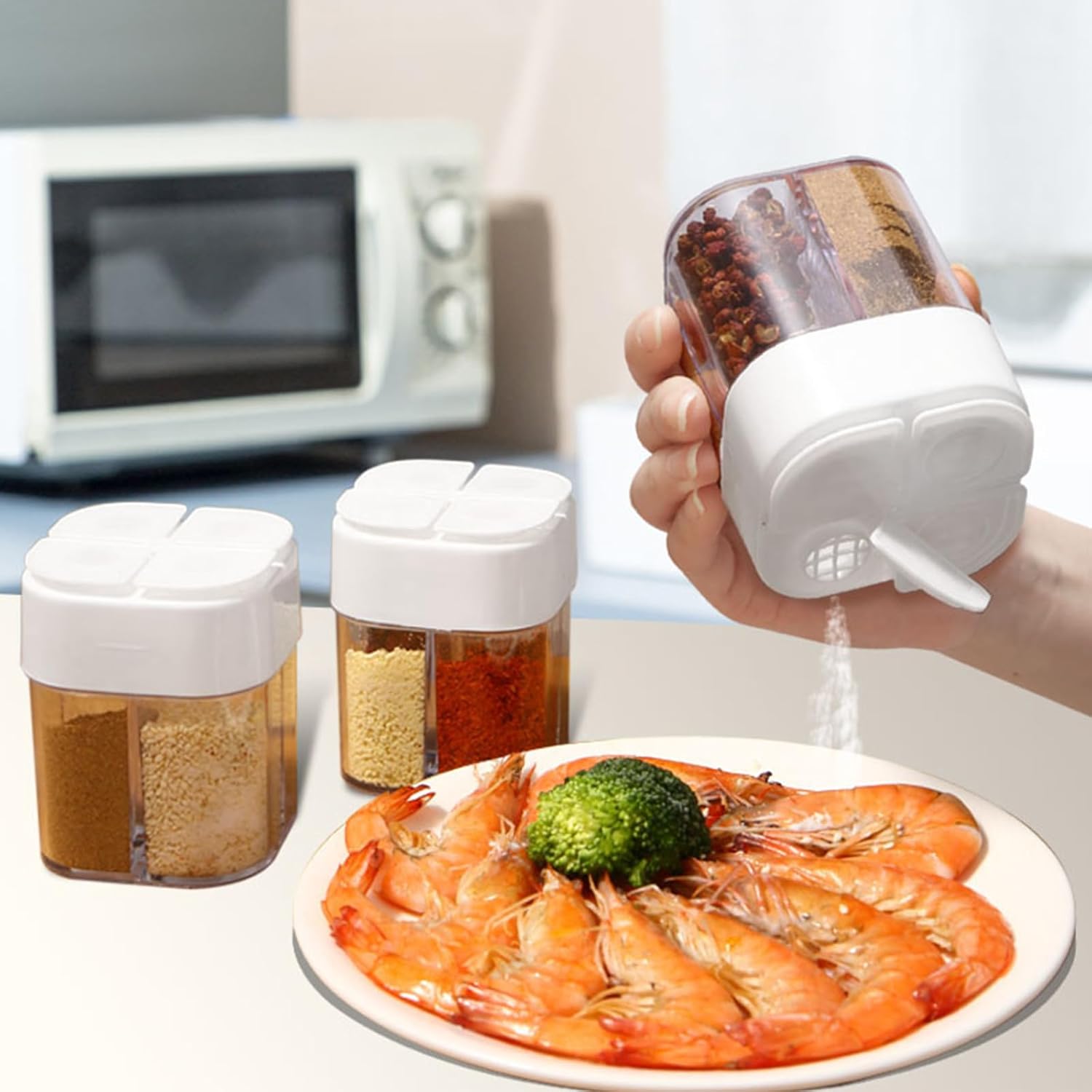- 4 in 1 Spice Shaker: the spice pot has four compartments for storing different spices to avoid odour; you can easily choose how much salt, pepper or other spices you want to add. It saves space and meets your different spice requirements.