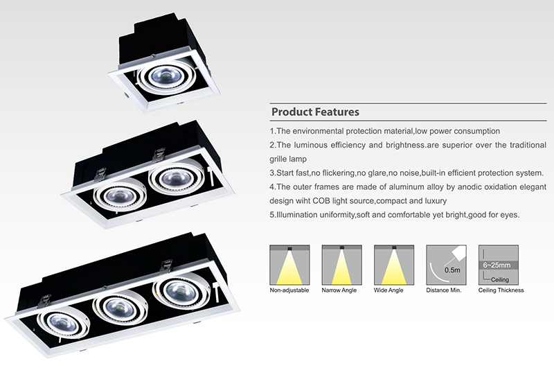 1.The environmental protection material, low power consumption2.The luminous efficiency and brightness. are superior over the traditional grille lamp