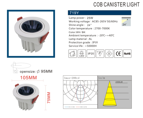 Working voltage :AC85-265V 50/60HzShine angle : 24*