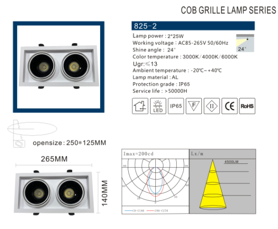 Working voltage :AC85-265V 50/60HzShine angle : 24″