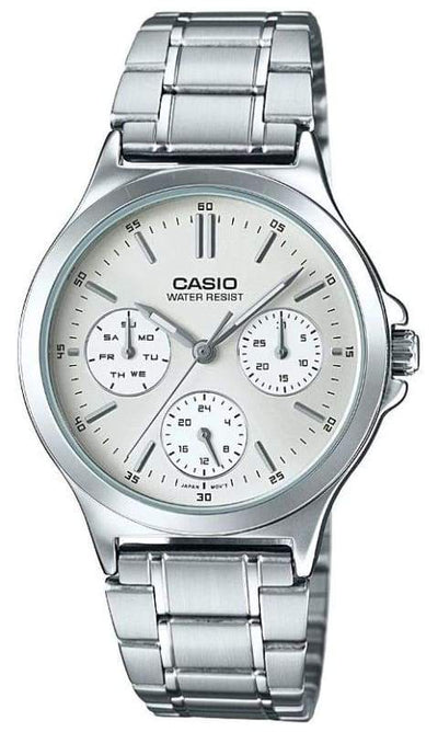 Product Features: Brand: Casio Watch Shape: Round Dial Case Diameter Size: Band Material: Stainless Steel Display Type: Analog Targeted Group: Women Type: Casual Watch Model Number: LTP-V300D-7AUDF