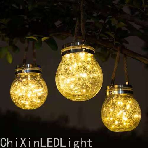 Chixin Solar LED Copper Wire Lamp Creative Cracked Glass Bottle Lantern Outdoor Waterproof Garden Lighting Decoration Hanging Lamp