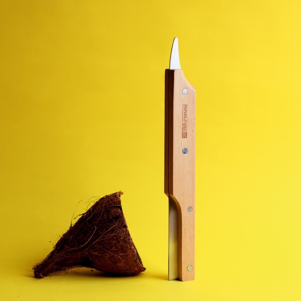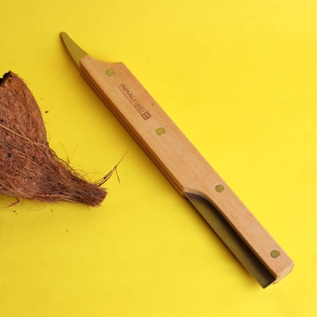 Coconut Cutter with Wooden Handle, Coconut Driller, RF11118 | Coconut Opener Knife, Coconut Water Opener | Helps Remove Coconut Flesh from Shell | Coconut Splitter /Peeler /Scraper