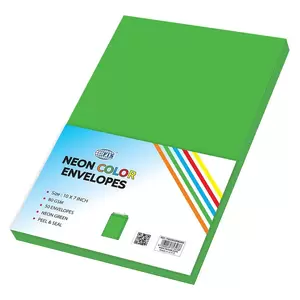 FIS Color Envelopes Peel & Seal, Neon Colors, Pack of 50 Pcs. Green Color, 10 x 7 Inch, 80 GSM – FSEC8033PBGR50