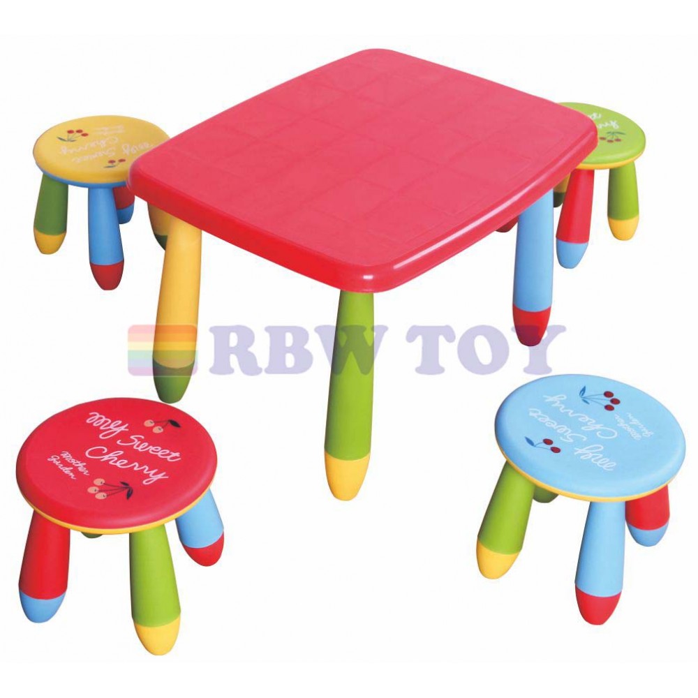 This RBWTOY Table and 4 stool set is an all-purpose table and stool set that can be used inside a Kids playroom, bedroom or outside in the yard.
