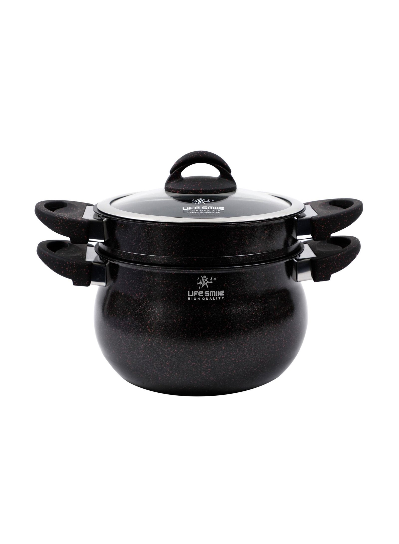 Life Smile 24 (8 Litre) Multipurpose Stock Pot and Steamer Pot Set – Induction Couscoussier with PFOA-free Aluminum Non Stick 2-tier Cooking Pot with Lid for Soups,Seafood,Vegetables,Stews and Pasta
