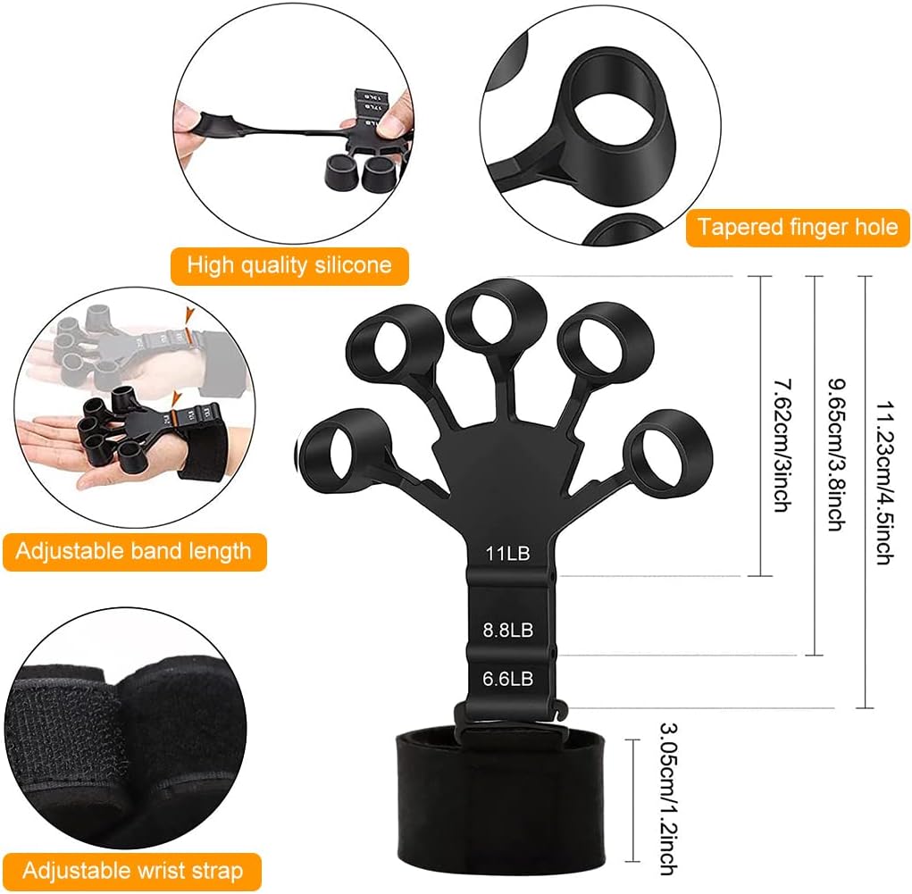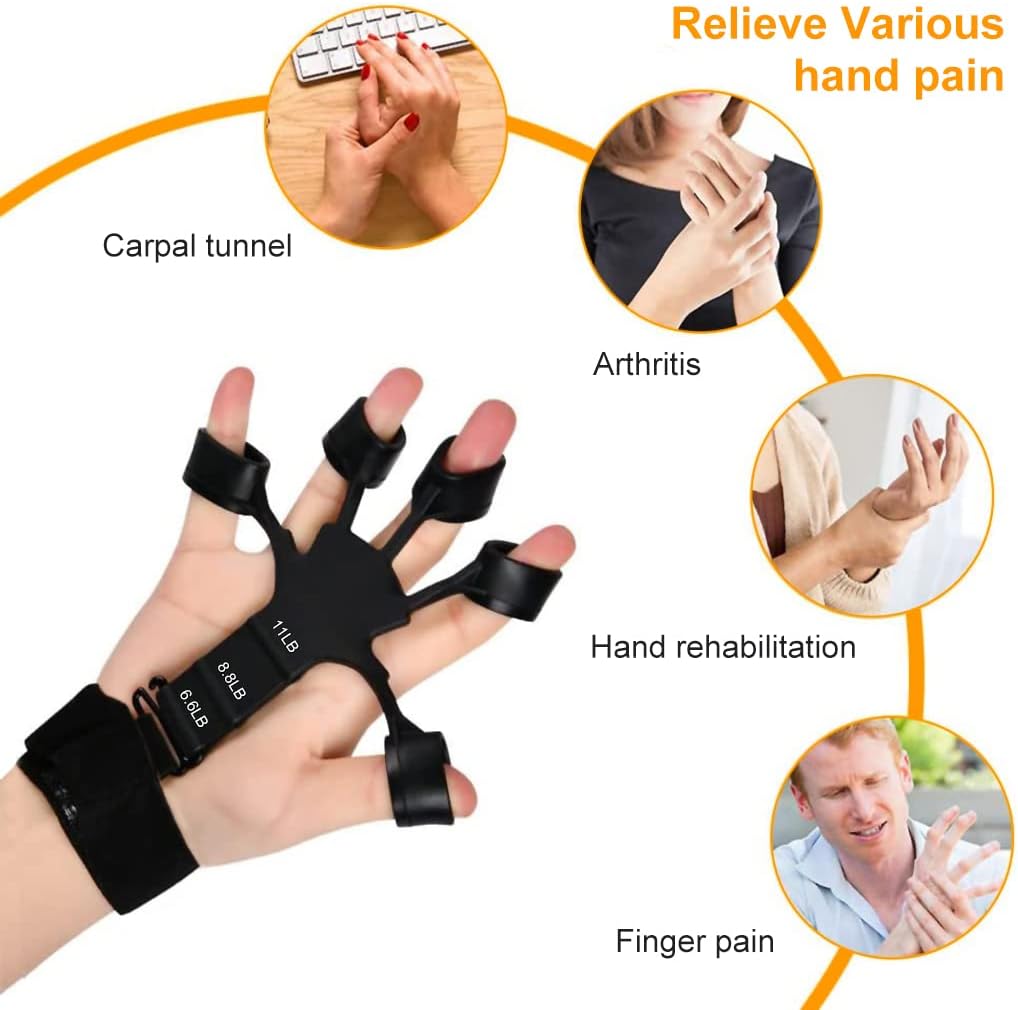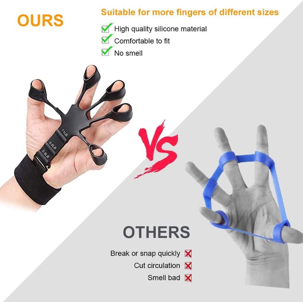 - SCIENTIFIC FINGER TRAINING TOOL: Through simple stretching out your finger with proper resistance activates the finger joint and muscle, helping you to improve grip ability and hand strength, restore strength, flexibility, feeling, and dexterity in fingers. It also can improves finger strength in athletes (rock climbers, fitness, tennis, baseball, boxing, tennis, golf and shooting) and musicians (guitar, bass, pianist and violinist).