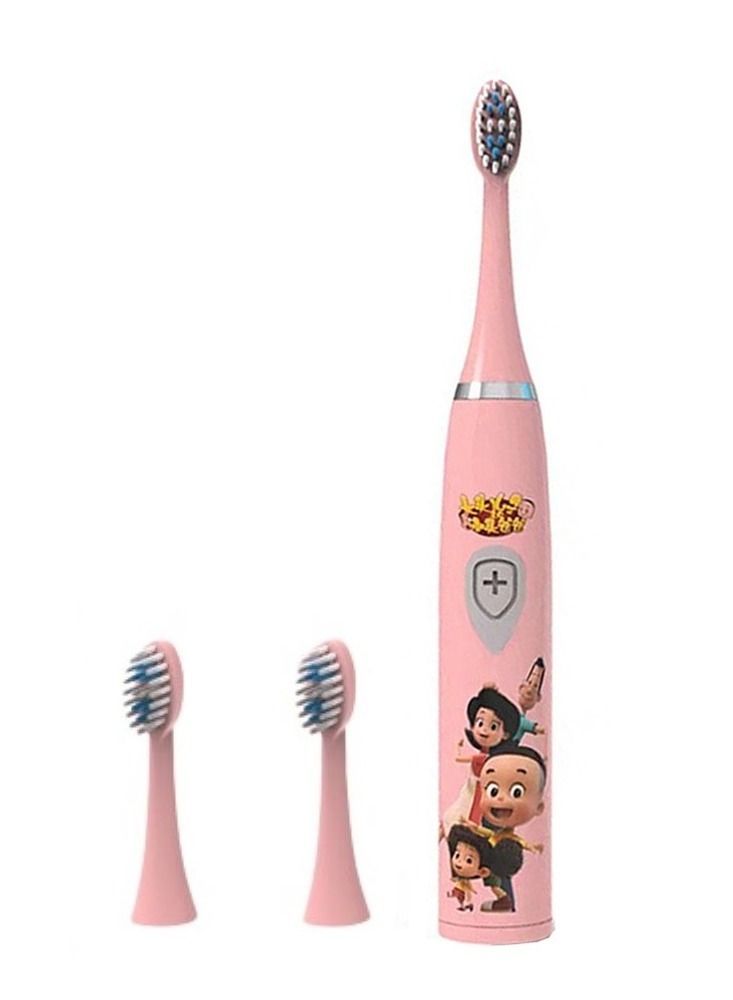 MARGOUN Electric Toothbrush for Kids Rechargeable Cartoon Printed Children Toothbrush with 2x Replacement Brush Heads Battery Operated Pink