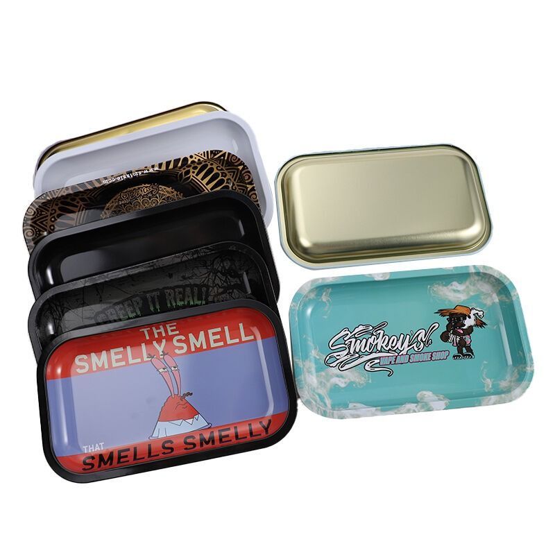 Multiple Size Custom LOGO Metal Small Size Rolling with Magnetic Lid Tin Weed Tray RAW Serving Tray for Sale