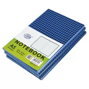 Pack of 5 Pieces A5 PVC Soft Cover Square Lines Notebook Blue/Black