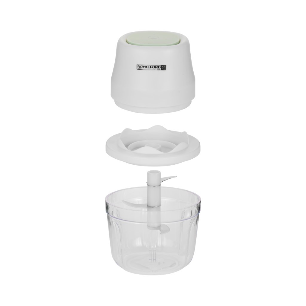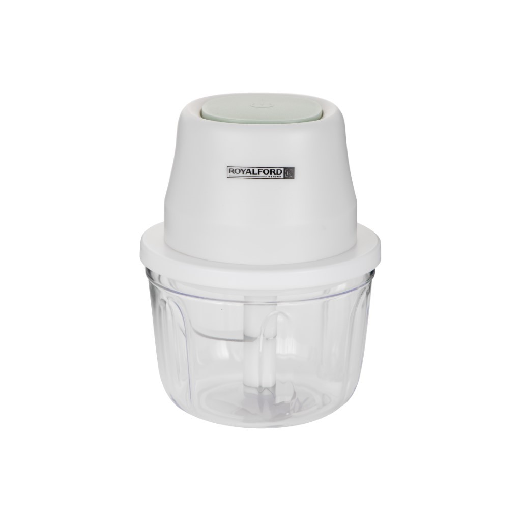 It is time to save time in the kitchen with the Royalford portable mini food processor. This versatile and time-saving chopper is built from high-grade, food-safe, BPA-free PP and PET materials and is suitable for everyday use. The rechargeable food processor has a large storage bowl with a capacity of 250 ml and super-sharp swirl-shaped blades for efficient and hassle-free chopping. The food processor works on power with one touch button, making it a must-have in your kitchen. The tiered blade set is made of premium-quality material that is corrosion-resistant and does not bend easily. In addition, the blades are placed at different levels facing different directions for efficient dicing and chopping. The food processor is suitable for chopping onions, potatoes, carrots, garlic, cucumbers, and so on easily in a few seconds. The transparent body allows you to check the contents inside. The compact and innovatively designed chopper has a wave-shaped mini piece, which makes it easy to wash and assemble. This multi-purpose food processor is portable and space-saving and is ideally suited for small kitchen spaces. This easy-to-use chopper speeds up the cooking process. The chopper has a 1300mAh battery and can be recharged using a USB cable. The food processor is also quiet, safe to operate, and perfect for gifting. The elegant white and grey colors, modern design, and efficiency make it an attractive option. It comes in two colors green and grey and measures 14×10.8×10.8cm in size. Packaging dimension: 11x11x15cm. ‘