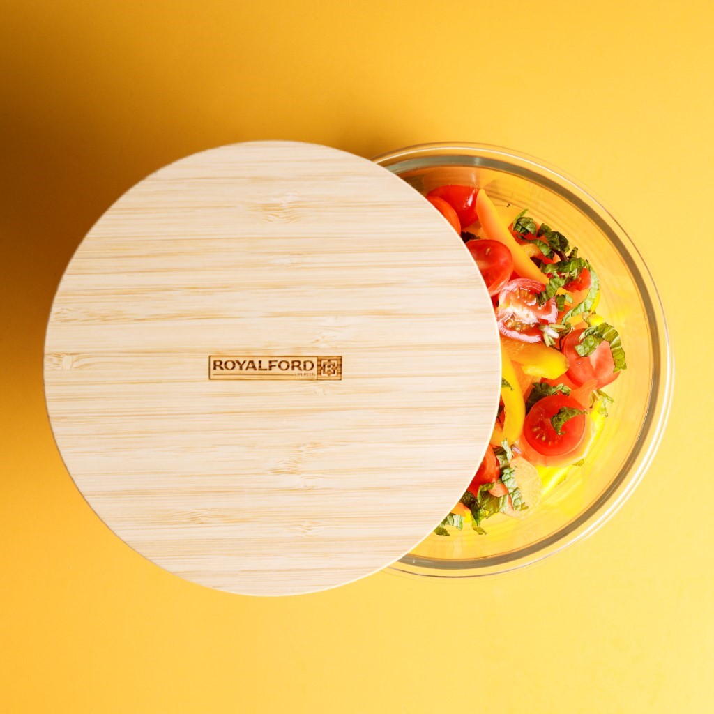 Round Glass Food Container with Bamboo Lid, RF10324 – 650 ml – Freezer & Dishwasher Safe, Air Tight Lid with Silicone Sealing Ring, Portable, Eco-Friendly
