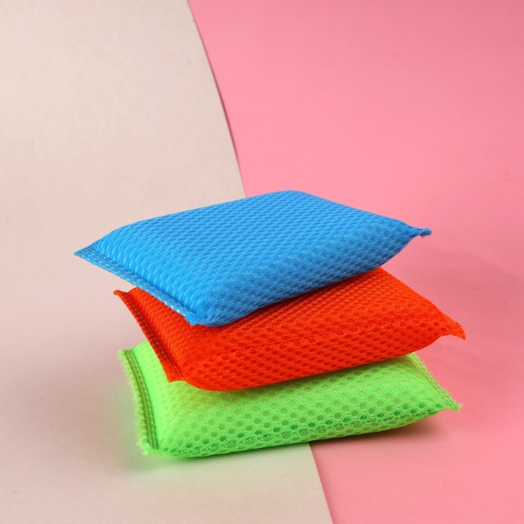 Give your hands the comfort they deserve by cleaning any tough stains in a single swipe. Tackle the toughest stuck-on messes and achieve a sparkling spotless surface with Royalbright heavy-duty scrub sponges. The scrub sponges are made from the finest quality polyester and PU materials, which help you tackle firm stains and grease on your utensils. The scrub is capable of cleaning oily plates and deep stains easily. It is made of premium-quality material and creates lather easily, even with a small amount of washing detergent or liquid. It is non-acidic, which reduces damage to utensils, cookware, and toilet surfaces. Our cleaning scrub sponges are specially designed for hard stains and are highly durable and resistant to degradation from exposure to hot water, detergents, and common cleaning liquids. They do not wear out or tear even after repeated use. These are durable and long-lasting. Each scrub sponge is firm and tough, which makes it convenient for everyday use. The rectangular sponge provides a comfortable grip and is easy to handle. It is used to clean basins, kitchen sinks, bathroom tiles, and so on. High-quality polyester helps to retain its shape for a longer period of time. The scrub sponges are engineered to have maximum absorption with fast dehydration. The pack of three cleaning sponges comes in different colors. The cleaning sponges are 14x8x2.5cm in size and weigh 0.039kg. ‘