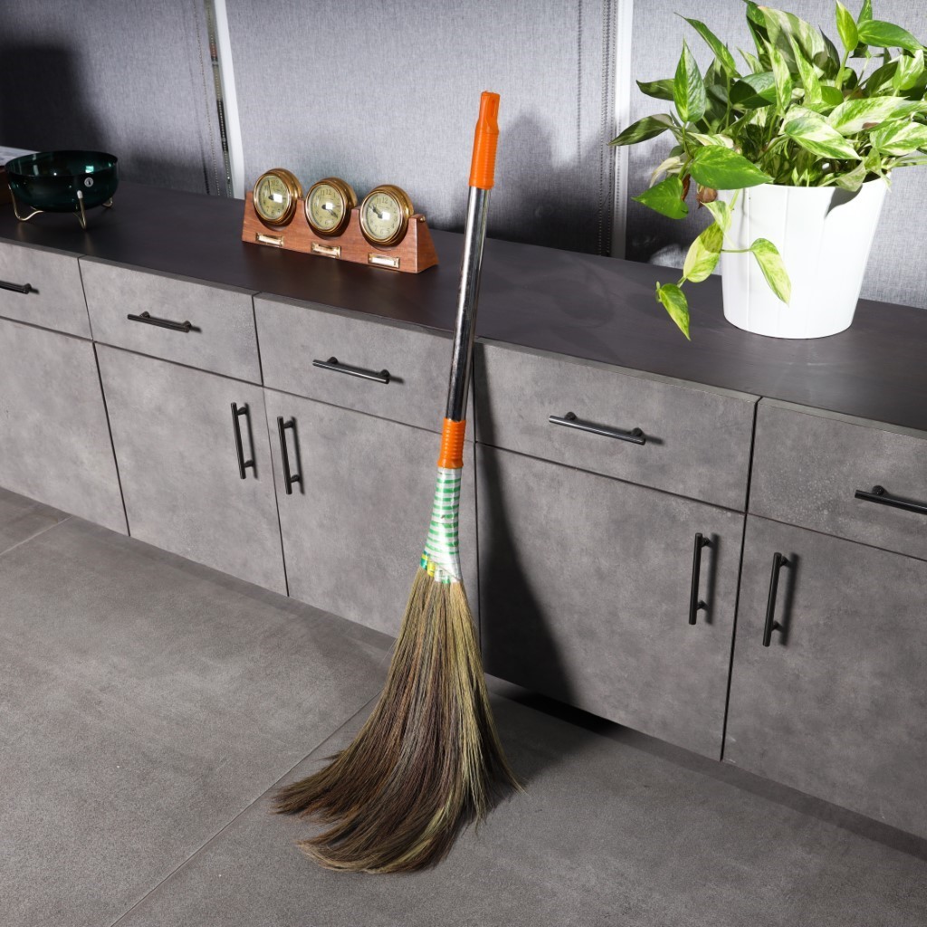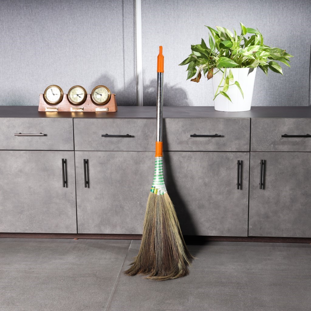 Clean your space efficiently. Designed for convenience, the Royalbright offers you a strong and sturdy grass broom with a long handle to make dusting an easy task. The broom has a long, stainless steel handle and a soft grass head without filler sticks for comfort. It provides a smooth and efficient cleaning experience. Made from the highest quality materials, the broom is sure to last a lifetime. The flexible broom is extremely useful for cleaning large areas and all types of floors. It can be used on wet and dry surfaces. The broom effectively collects dust and debris from every corner, keeping the area neat and tidy. The flexibility and a long stainless steel handle make it easy for you to clean without bending and reduce the strain on your back. The soft grass helps you clean the surface by maintaining proper contact without leaving bhusa or dust particles behind. The ergonomically designed handle allows for smooth and firm gripping when using the product. The grass broom is also an eco-friendly option to clean your house. The broom is light-weight and can be used at home, at work, in the office, in the hospital, and other places. The product has a vibrant color scheme and a handle that measures 120x15x4cm in size and weighs 0.480kg. The high efficiency and simple design make it a smart choice. ‘