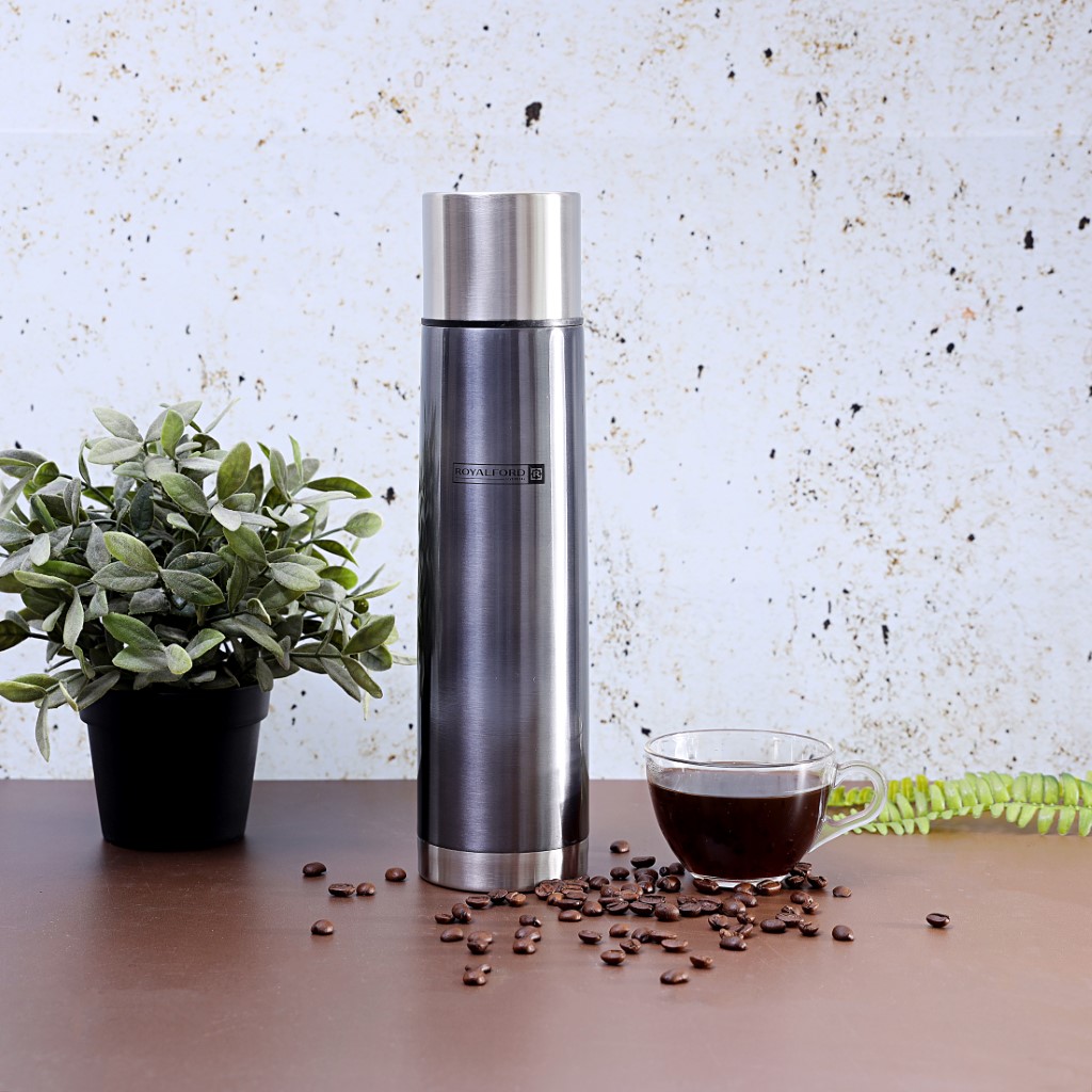 Royalford 1.0 L Stainless Steel Vacuum Water Bottle- RF7665| High-Quality Double Wall Construction Preserves the Flavor and Freshness| Portable, Leak-Resistant and Light-Weight| Suitable for Indoor and Outdoor Use| Black