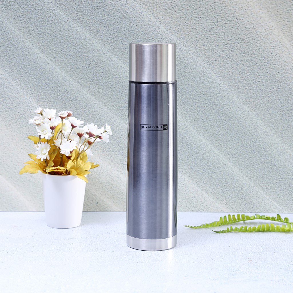 LEAK-PROOF & SPILL-PROOF & SWEAT-PROOF – The compact lid makes no leakage. Royalford 1 L bottle wide mouth design, no worry about water spilling out when drinking in the car/train/boat/bus/plane. Your drink will truly stay as hot or cold as long as possible. Even filled with ice or boiling water, the bottle will never sweat or get hot when touching it! STAINLESS STEEL BOTTLE BODY – Royalford water bottle is made of high-quality food-grade stainless steel and is BPA-free. Shatter Resistant and durable and maintains flavour and freshness of your drinks. VACUUM INSULATION TECHNOLOGY – The Wave bottles have a vacuum seal between the walls. This means your drink will stay at its ideal temperature for hours. Plus, the exterior will never sweat or get hot or cold to the touch. KEEP HOT & COLD – This stainless steel vacuum insulation keeps water hot and cold for a long time without sweating or condensation. NO LEAKING – The travel water bottle comes with a leak-proof, insulated, BPA, and Phthalates-free cap. The stainless steel lid will prevent any accidental spills. Dimensions: 8.5 x 8.5 x 33.6 cm ‘ ‘