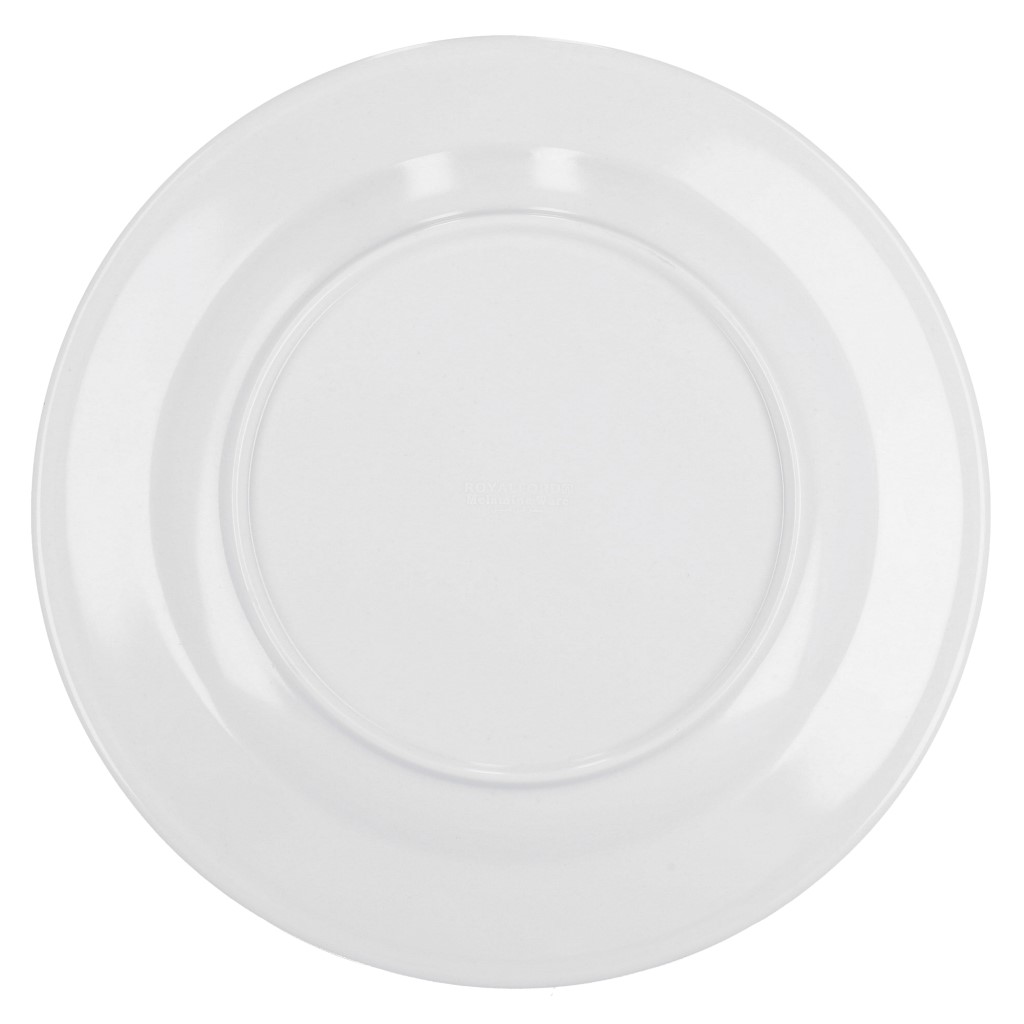 Royalford 10″ Melamine Ware Flat Plate – Maggie, Soup Plates Pasta Plates | plate with playful Classic decoration | Ideal for Soup, Desserts, Ice Cream & More (White)