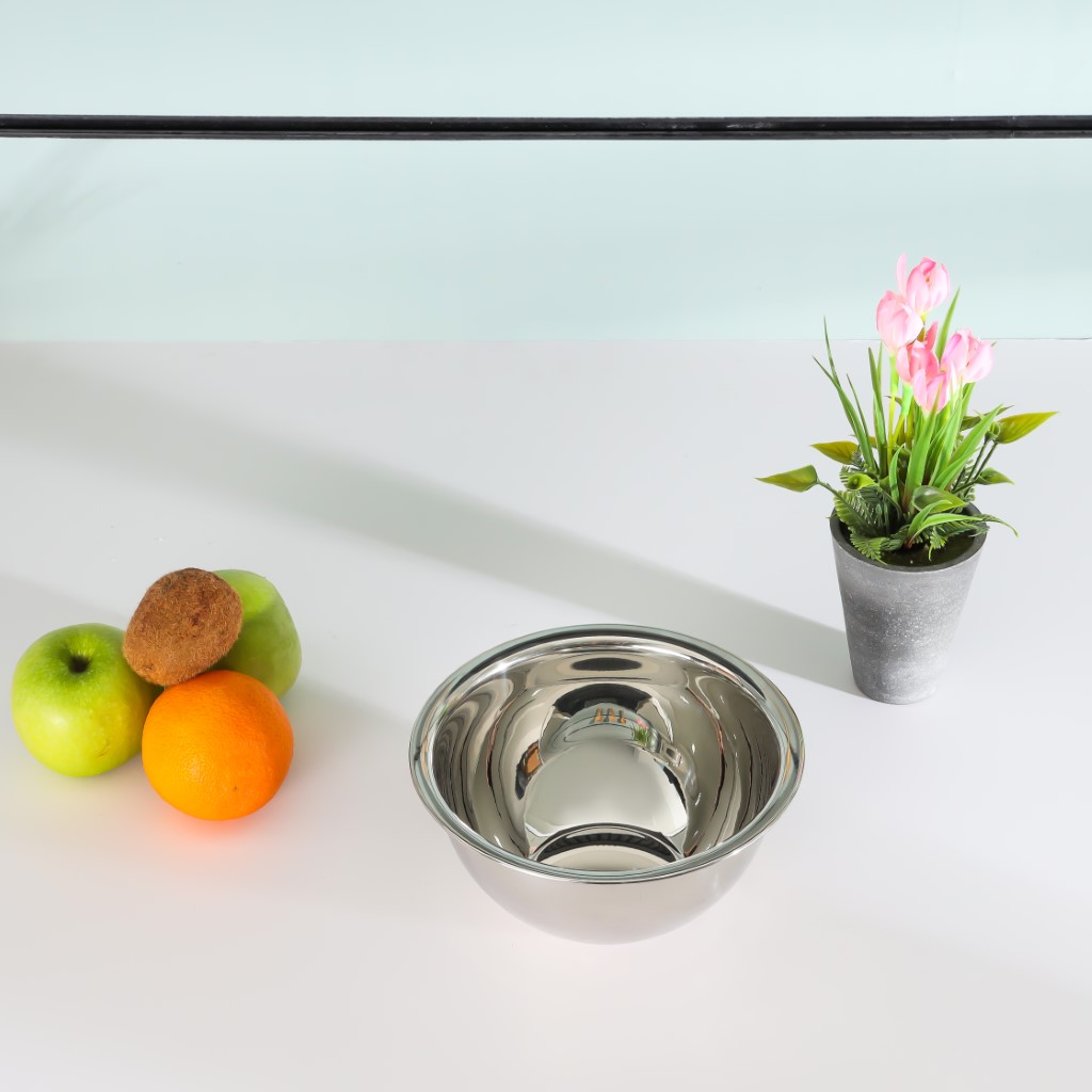 Cook up a storm with the perfect partner. The Royalford mixing bowl allows you to mix batters to bake delicious cakes or toss salads for your gatherings with ease and convenience. It is designed with 100% food-grade, hygienic stainless steel materials, which are non-toxic and safe to use daily. The bowl has a large capacity, is versatile, and has multiple uses, ranging from mixing batter to tossing salads, whipping cream, making marinades, and much more. The strong and tough stainless steel construction with an anti-skid base provides stability and keeps your bowl in place while using it. Its excellent features and simplistic design with a mirror-finish body make it a worthy addition to your collection. The bowl is break-resistant, and the chances of it shattering or breaking into pieces are slim. The bowl can be reused and is easy to clean. The high-quality material retains its look and prevents scratches and stains. The bowl is silver in color, measures 18x18x9 cm in size, and weighs 0.241 kg. It is easy to hold with its rounded and smooth edges. The bowl offers hassle-free cleaning, is easy to maintain, and will last for many years. Stylish and durable, this bowl is the perfect gift for yourself and your loved ones. ‘