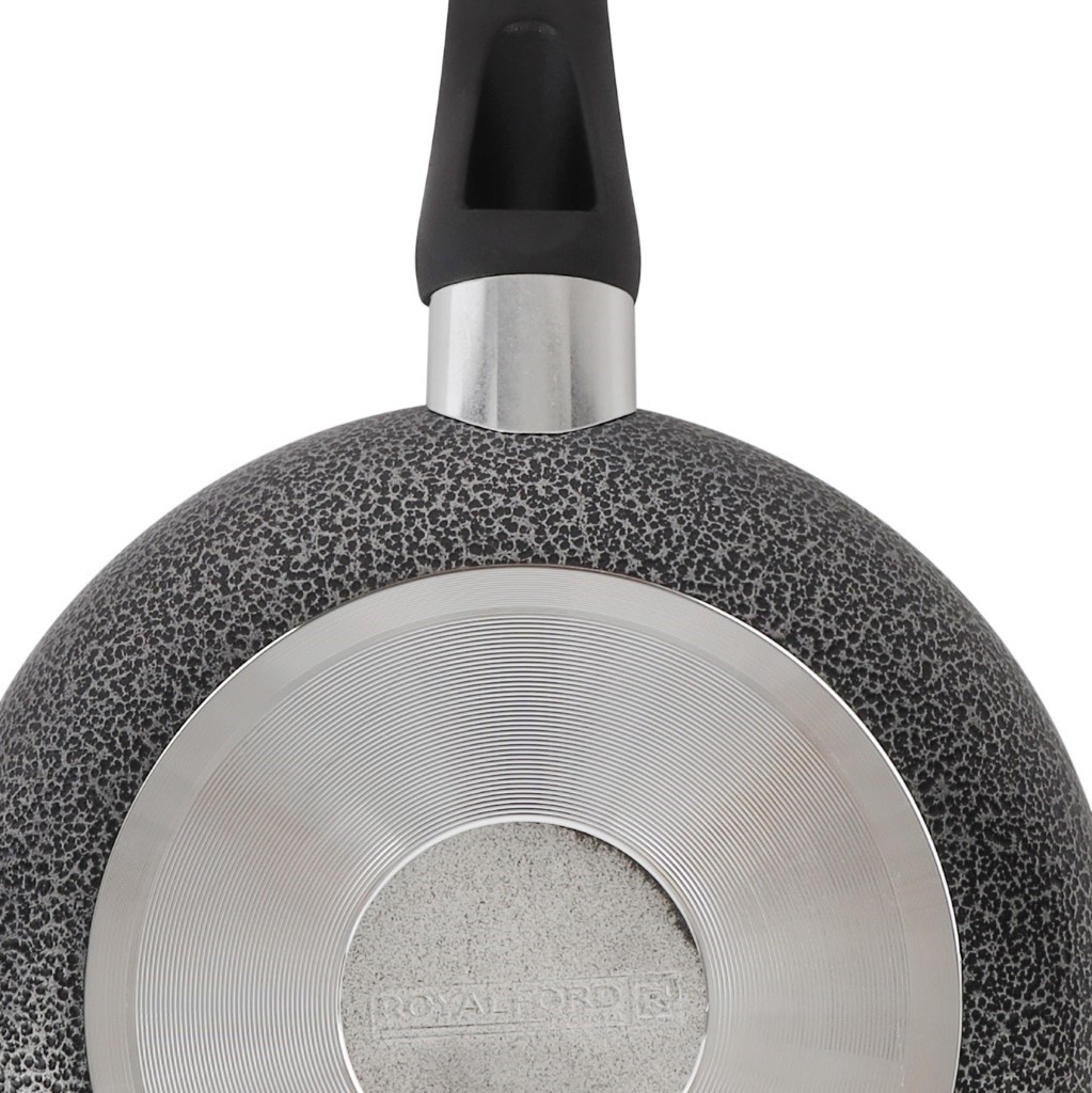 b” Enjoy delicious dishes made with this fry pan. The Royalford aluminum frypan with a tempered glass lid is a very durable, strong, and easy-to-clean pan that is an excellent addition to your collection. It has a nonstick coating and a stylish black texture on the exterior. This sturdy aluminum pan has a non-toxic, non-stick coating, and its flat bottom offers efficient cooking. With the non-stick coating, you can enjoy a long-lasting cooking experience with minimal oil or ghee. The high heat retention capacity and durability enable years of healthy cooking. The flat bottom ensures heat distribution and fast cooking. The pan features a heat-resistant Bakelite handle with a soft touch that offers safety, making it easy to use for beginners. The pan has a top-quality nonstick coating that ensures easy food release and quick cleanup. The fry pan is versatile and a healthy choice for you and your family. It is suitable for shallow frying, deep frying, sauting, searing, tempering, etc. Measuring 20 cm in diameter, this frypan is ideal for preparing eggs, fish fries, chicken fries, pancakes, toasting bread, and more. The tempered glass lid allows you to keep the pan closed and monitor the cooking process without opening the lid. Its robust body and utility features make it convenient to use. The fry pan is compatible with hot plates on halogen, ceramic, and gas cooktops. Do not use the pan on an induction cooktop. It offers hassle-free cooking, easy cleaning, and low maintenance. It features a modern design, stylish color, and long-lasting durability, making it a thoughtful gift option. Make your home a kitchen paradise with this stylish aluminum fry pan and prepare healthy and tasty meals. ‘ “