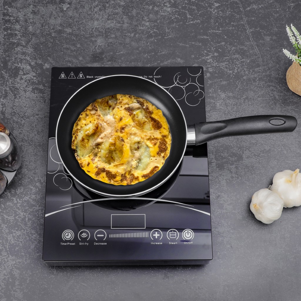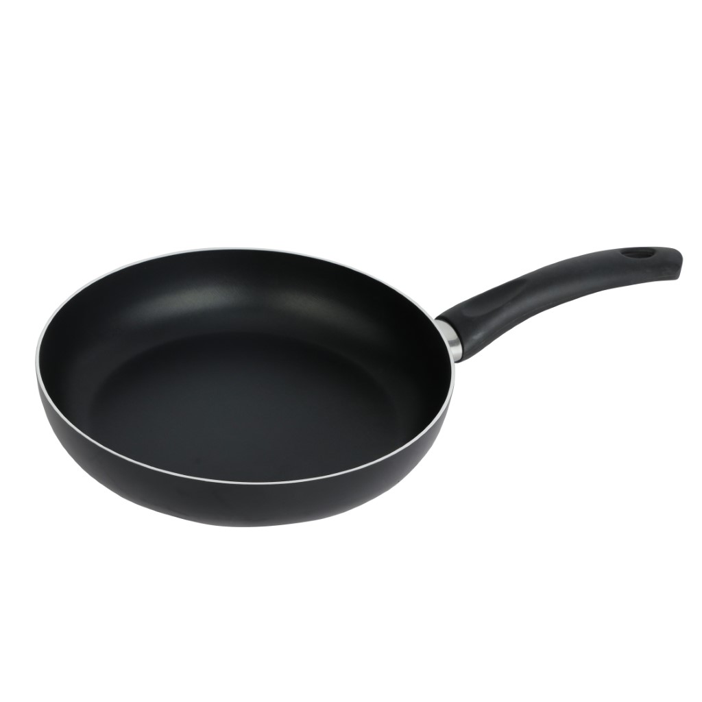 Stylish aluminum fry pans from Royalford will add sophistication to your kitchen. An excellent addition to your collection, this aluminum frying pan is durable, strong, and easy to clean. It has a nonstick coating and a stylish black color. This sturdy aluminum pan with a non-toxic non-stick coating has a heat-resistant exterior and a round flat bottom, which offers you an efficient cooking experience. With the non-stick coating, you can enjoy a long-lasting cooking experience with a very minimal amount of oil or ghee. The high heat retention capacity and durability enable years of healthy cooking. The flat bottom ensures an even distribution of heat and fast cooking. The pan features a heat-resistant Bakelite handle with a soft touch that offers safety, making it easy to use for beginners. The pan has a top-quality nonstick coating that ensures easy food release and easy cleanup. The fry pan is versatile and undoubtedly a healthier choice for you and your family. It is suitable for shallow frying, deep frying, sauting, searing, tempering, etc. Measuring 40x22x4.3 cm in size, this frypan is ideal for preparing eggs, fish fries, chicken fries, pancakes, toasting bread, and much more. Its robust body and utility features make it convenient to use. The fry pan is compatible with hot plates, halogen, ceramic, and gas cooktops. With an attractive color, a modern design, and long-lasting durability, it makes a thoughtful option for gifting. Bring forth the inner chef in you with this stylish aluminum fry pan and prepare healthy and delicious meals at home. ‘