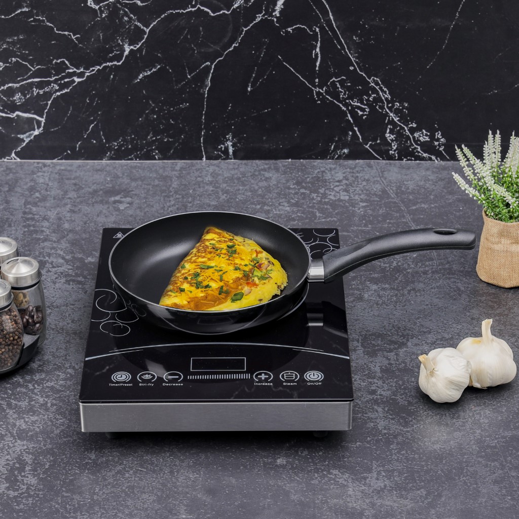 We have everything you need when it comes to the best fry pan for your kitchen, and we have you covered with the best. An excellent addition to your collection, this aluminum frying pan is durable, strong, and easy to clean. It has a nonstick coating and a stylish black color. This sturdy aluminum pan with a non-toxic non-stick coating has a heat-resistant exterior and a round flat bottom, which offers you an efficient cooking experience. With the non-stick coating, you can enjoy a long-lasting cooking experience with a very minimal amount of oil or ghee. The high heat retention capacity and durability enable years of healthy cooking. The flat bottom ensures an even distribution of heat and fast cooking. The pan features a heat-resistant Bakelite handle with a soft touch that offers safety, making it easy to use for beginners. The pan has a top-quality nonstick coating that ensures easy food release and easy cleanup. The fry pan is versatile and undoubtedly a healthier choice for you and your family. It is suitable for shallow frying, deep frying, sauting, searing, tempering, etc. Measuring 42x24x4.8cm in size, this frypan is ideal for preparing eggs, fish fries, chicken fries, pancakes, toasting bread, and much more. Its robust body and utility features make it convenient to use. The fry pan is compatible with hot plates, halogen, ceramic, and gas cooktops. With an attractive color, a modern design, and long-lasting durability, it makes a thoughtful option for gifting. Bring forth the inner chef in you with this stylish aluminum fry pan and prepare healthy and delicious meals at home. ‘