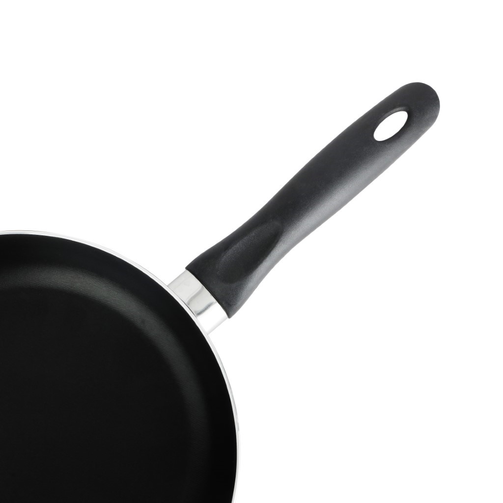 Royalford 24 CM Aluminum Fry Pan- RF11666| Strong Aluminum Body With Non-Stick Coating And Bakelite Handle| Heat Resistant Exterior, Compatible With Hot Plate, Halogen, Ceramic And Gas Stovetops| Perfect For Frying, Sauting, Tempering| Black