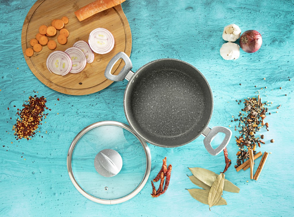 1. Royalford Aluminium Saucepan 24 cm – A healthy way of cooking, Royalford Smart Casserole Dish is a healthy alternative to traditional pots which lets you enjoy beautiful cooked meats and vegetables. 2. Non-Stick Stylish Saucepan for Ultra Cooking Performance – Enhance your kitchen with the Royalford Casserole Dish, featuring unique non-stick professional-quality cookware designed for optimum cooking performance at home. Enjoy meals without food sticking to the pan during cooking. With less oil or residue, they are delightfully easy to clean which is ideal for active cooks and busy kitchens. 3. Multiple Hob Types – It features an induction base, making it suitable for use on most hob types. Suitable for multiple cooking sources (stove & cooktops): electric / gas / ceramic cooktops. Here’s another benefit of aluminium: it heats up quickly & evenly, so you don’t get the ‘hot spots’. 4. Efficient and Convenient Cooking – This stockpot is equipped with a tempered glass lid with a built-in steam vent for precise, efficient cooking whilst soft-touch, stay-cool handles, allowing for comfort and control when handling. 5. Ease of use – With close-fitting toughened glass and stainless steel lids, you can control your cooking to ensure no messy spills and complete cooking convenience. Dimensions: 52 x 37 x 40.5 cm ‘