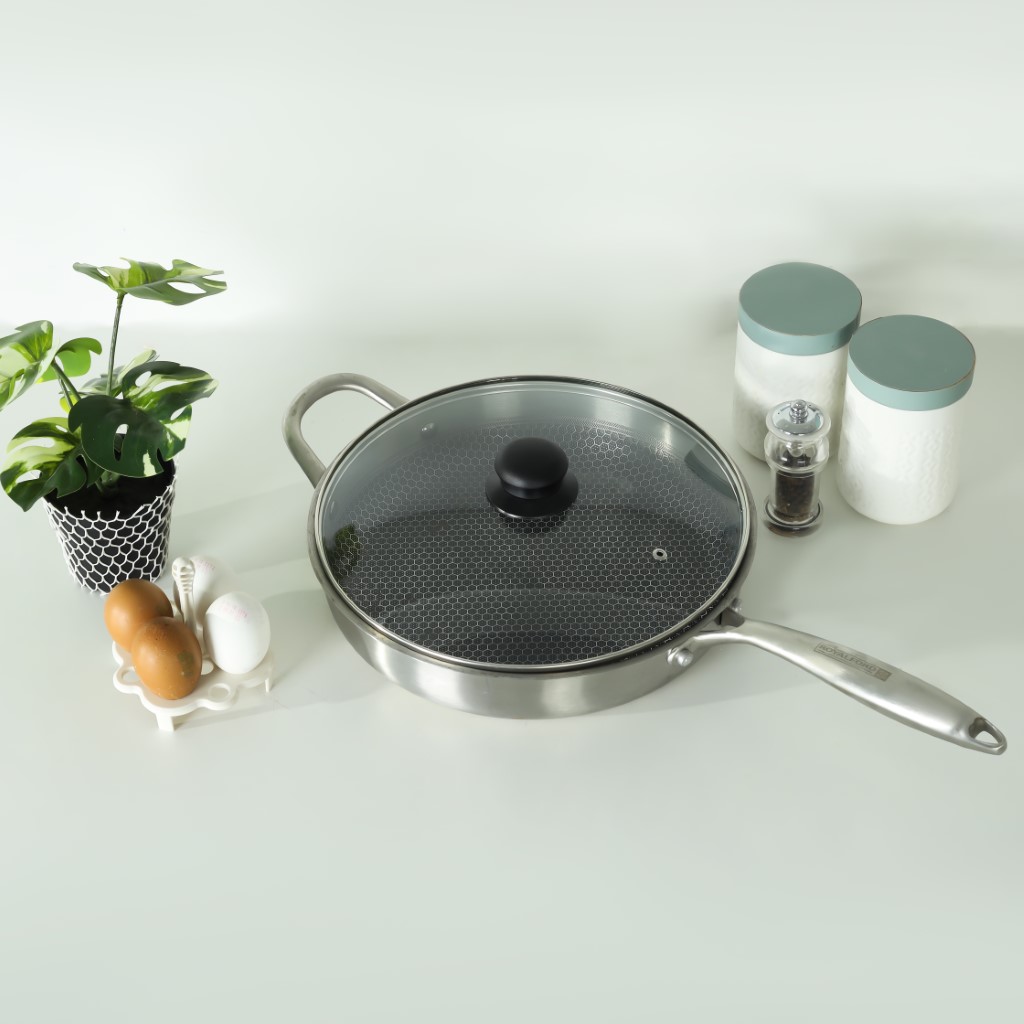 Have a broken lid on your cookware that needs replacing? Our team has you covered. The Royalford tempered glass lid comes with a Bakelite knob that is very durable and strong. The lid measures 28 cm in size with a thickness of 3.8 mm and is suitable for your casseroles, pots, kadais, pans, wok pans, fry pans, etc. The lid features high-quality tempered glass with a strong, soft-touch Bakelite knob. The knob is convenient to hold and does not burn your fingers. It also has a stainless steel frame and is resistant to corrosion and chipping. It is extremely hygienic and non-reactive to food items. The lid is very effective as it prevents the spatter of hot oil. In addition, transparent glass allows you to monitor the contents inside without opening them, thus retaining the moisture and flavor of the food. The lid also features a steam release vent, which allows steam to escape easily during cooking and protects against overflow to ensure safety. The lid is highly durable and can be reused. It is easy to clean, easy to store, and can be washed in the dishwasher. A reliable solution to your needs, this tempered glass lid is made from the finest quality materials. ‘