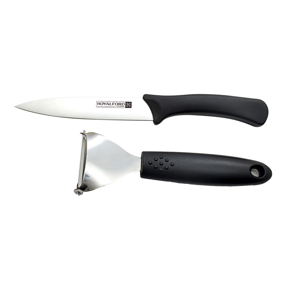 Royalford 2Pcs Utility Knife Set – Knife & Peeler with Stainless Steel Sharp Blades, Comfortable Long Handle | Ideal for Cutting Chopping Peeling the Vegetable, Fruits, Fish, Meat & More