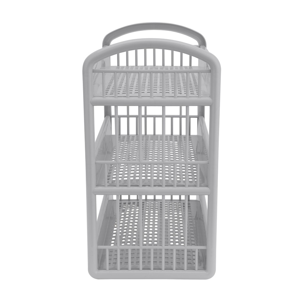 Organize in style with the Royalford 3-layer storage shelf. Designed from premium quality plastic, this storage shelf is handy, lightweight, and very useful for organizing your belongings. It is high in efficiency and appearance. The shelf has a strong and sturdy construction, which makes it durable and long-lasting. The shelf is suitable for various places such as the kitchen, bedroom, office, bathroom, and so on. The elegant and durable stand serves multiple purposes. This high-quality and attractive shelf not only organizes your things but also enhances the look of your space and makes it seem more spacious and airy. The shelf has a curved handle on the top and is lightweight and can be easily carried around. The compact design allows you to save a lot of space. The layers have ample space inside and help you keep your things in place. The anti-skid base prevents skidding and slipping, ensuring complete safety. Made of high-quality materials, the shelf does not require any maintenance and is very easy to clean. The beige color does not fade easily and can be used for a longer period. It is easy to assemble and user-friendly. The color, modern design, and efficiency make it a smart choice for your kitchen. The storage cabinet is available in beige, rose, green, and grey. It measures 35×20.5x39cm in size and weighs 0.800kg. Product dimensions: 35×20.5x39cm. Packaging dimension: 22×13.5x40cm ‘