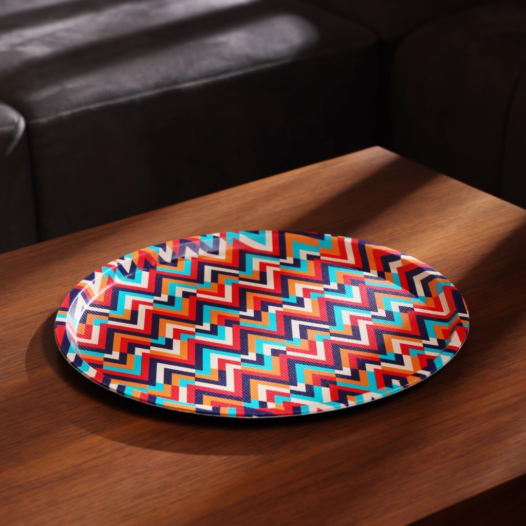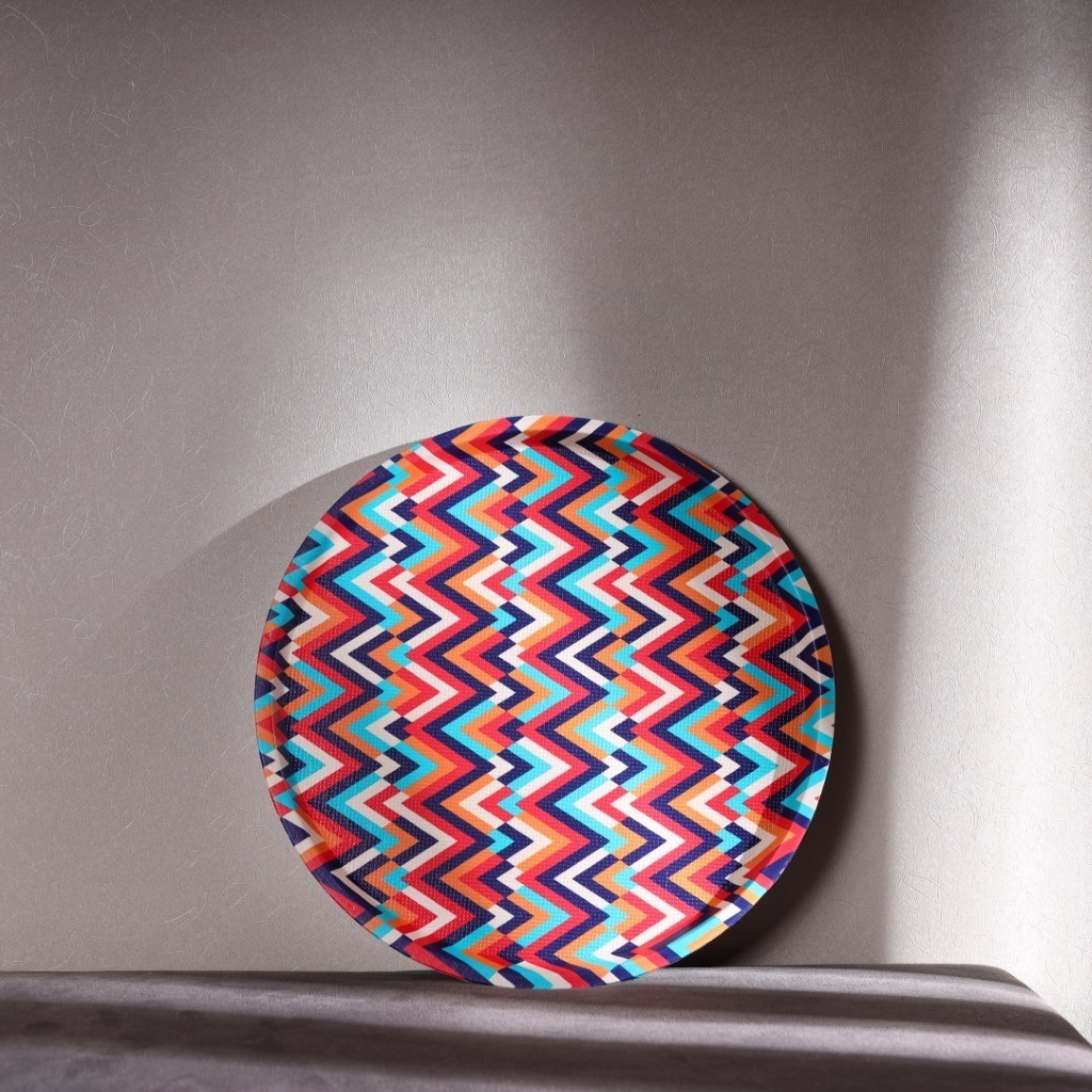 Perfect for all your essentials. The Royalford offers you a durable and stylish round leather tray with a pop of color and texture, perfect for all your needs. The tray is specially designed for everyday use and is made of high-quality, strong, long-lasting, hygienic, odorless, and safe material. The round tray is versatile and can be used for multiple purposes. The tray is perfect at home on a nightstand, countertop, or desk as a catchall for all your essentials. It is ideal for placing vases, books, candles, keys, sunglasses, and other precious things. This is a staple for any clutter-free surface and keeps it classy. The elegant and sleek design effortlessly blends in with your home dcor. The tray will add the right amount of color and texture to your hosting space. It can also be used for serving food, drinks, etc., and is certain to impress your guests. The tray can be used at home, in restaurants, or on any occasion. Made with top-quality material, this tray is durable and has a longer shelf life. The lightweight tray is ergonomically designed to ensure a comfortable and firm grip. This tray is break-resistant and is a safe replacement for ceramic and glass trays. The tray looks both elegant and chic and comes in six different designs to choose from, which will help you to create your own trend statement. It is also easy to clean. The leather tray measures 36 cm in size and weighs 0.345 kg. The tray has a smooth and rounded edge, making it convenient to carry around. ‘ “