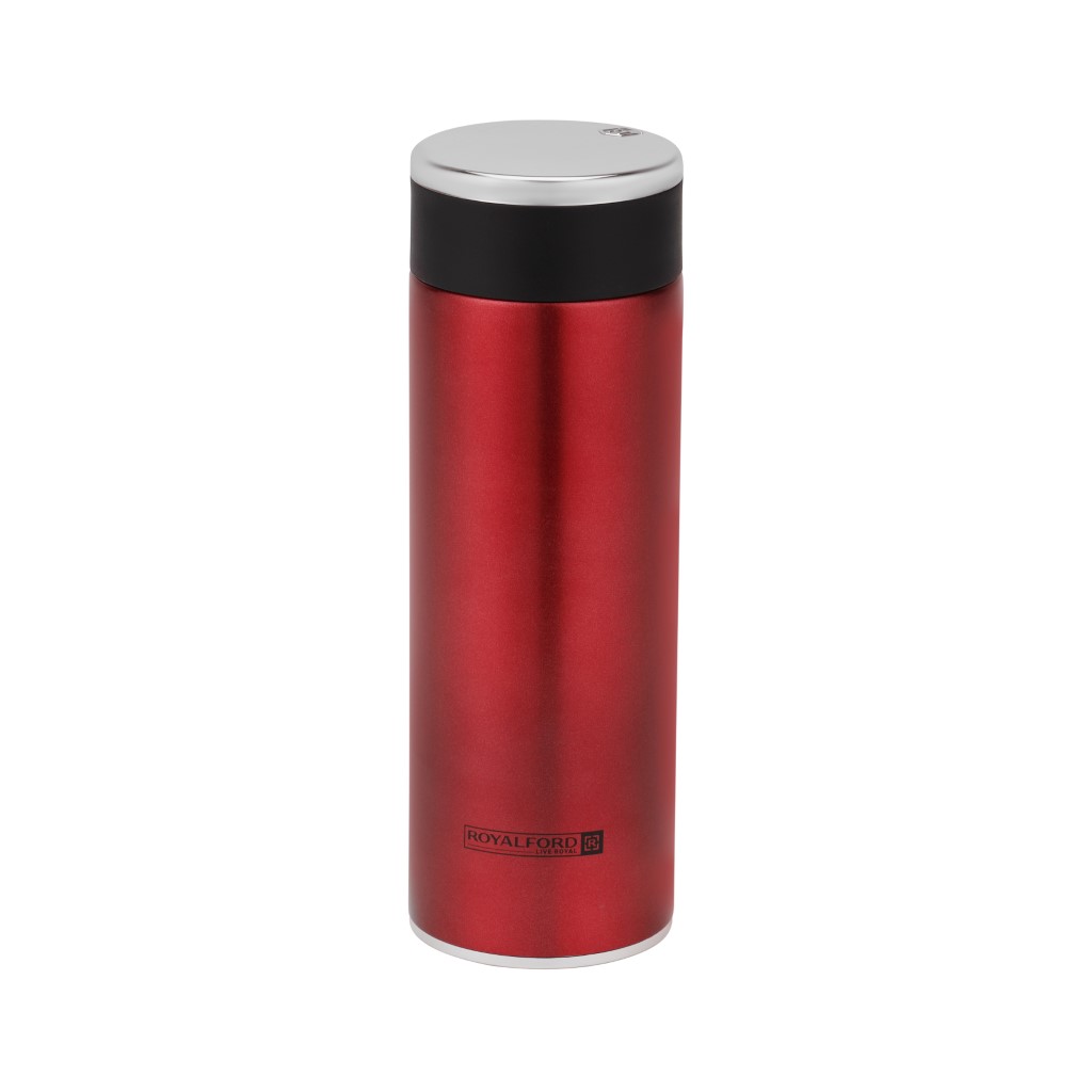 Choose the best water bottle to satisfy your thirst and stay hydrated. Royalford offers a durable and sturdy stainless steel vacuum water bottle that is stylish and efficient. The hot and cold water bottle is made from the highest quality stainless steel with a SS 304 inner pot and SS 201 outer body. It is BPA-free, lead-free, 100% food-safe, non-toxic, asbestos-free and safe to use. The water bottle is designed with a unique stainless steel interior and exterior that provides a healthy way to keep your drink hot or cold for a longer time. It is attractive and sturdy for storing water or other beverages such as tea, coffee, juice, etc. It is convenient to use while travelling, hiking, camping, and so on. The water bottle is durable and leak-proof and allows you to enjoy your drink without worrying about spillage, cracking, denting or leaking. It is also a mess-free affair. The wide mouth makes it easy to fill and serve. The water bottle is easy to clean and can be reused. Because of its compact design and portability, you can take it wherever you go without bulking up your bag. The water bottle has an easy twist cap and is engineered to preserve the freshness and flavors of the contents inside for long hours. The elegant design and vibrant red color make it an attractive option to carry with you. The water bottle is ergonomically designed with a comfortable body and is easy to carry. Made from food-grade materials, this water bottle is the perfect companion for your everyday use. The water bottle has a 6.5cm diameter and a 19.5cm height. It has a capacity of 360ml (12oz), measures 6.8×6.8x20cm in size, and weighs 0.240kg. The red vacuum water bottle comes in three color variants: red, brown, and green. ‘