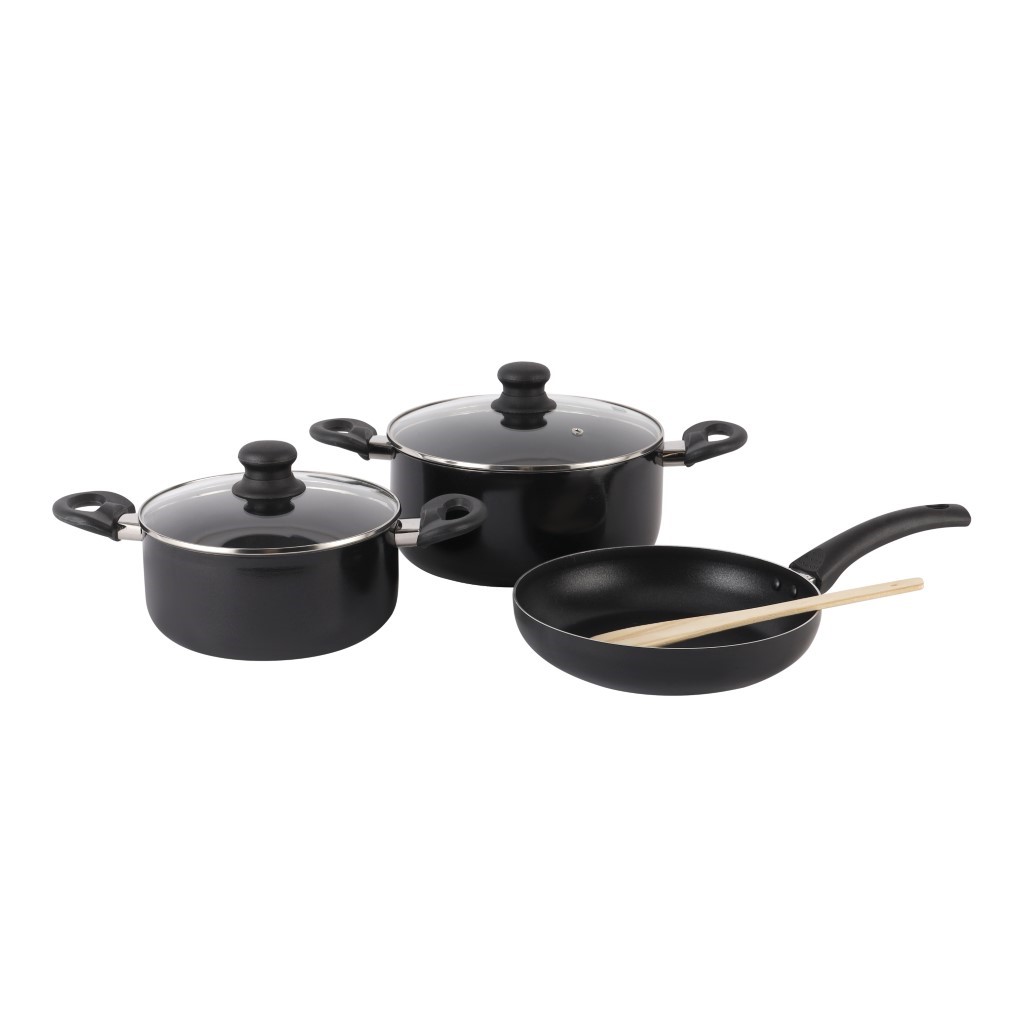 Royalford 6-Piece Non-Stick Cookware Set- RF11938| Aluminum Body With 3-Layer Non-Stick Coating, CD Bottom, Bakelite Handles And Glass Lid| Includes Casserole, Fry Pan, Wooden Spatula| PFOA-Free, Non-Stick Interior| Red