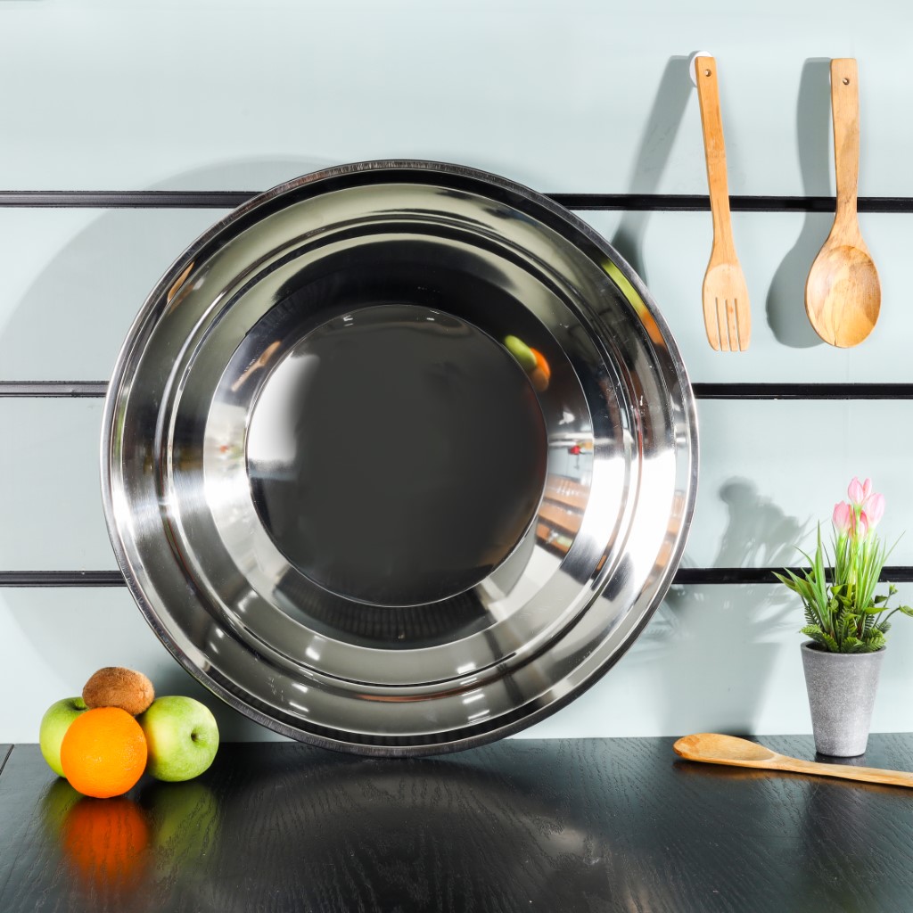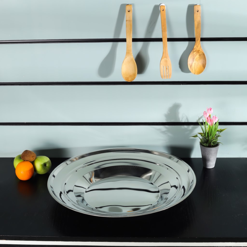 Royalford 60 CM Deep Round Serving Plate- RF11620| Premium-Quality, Light-Weight and Food-Grade Stainless Steel Plate| Elegant and Durable with a Mirror-Finish Body| Perfect for Serving Food| Silver