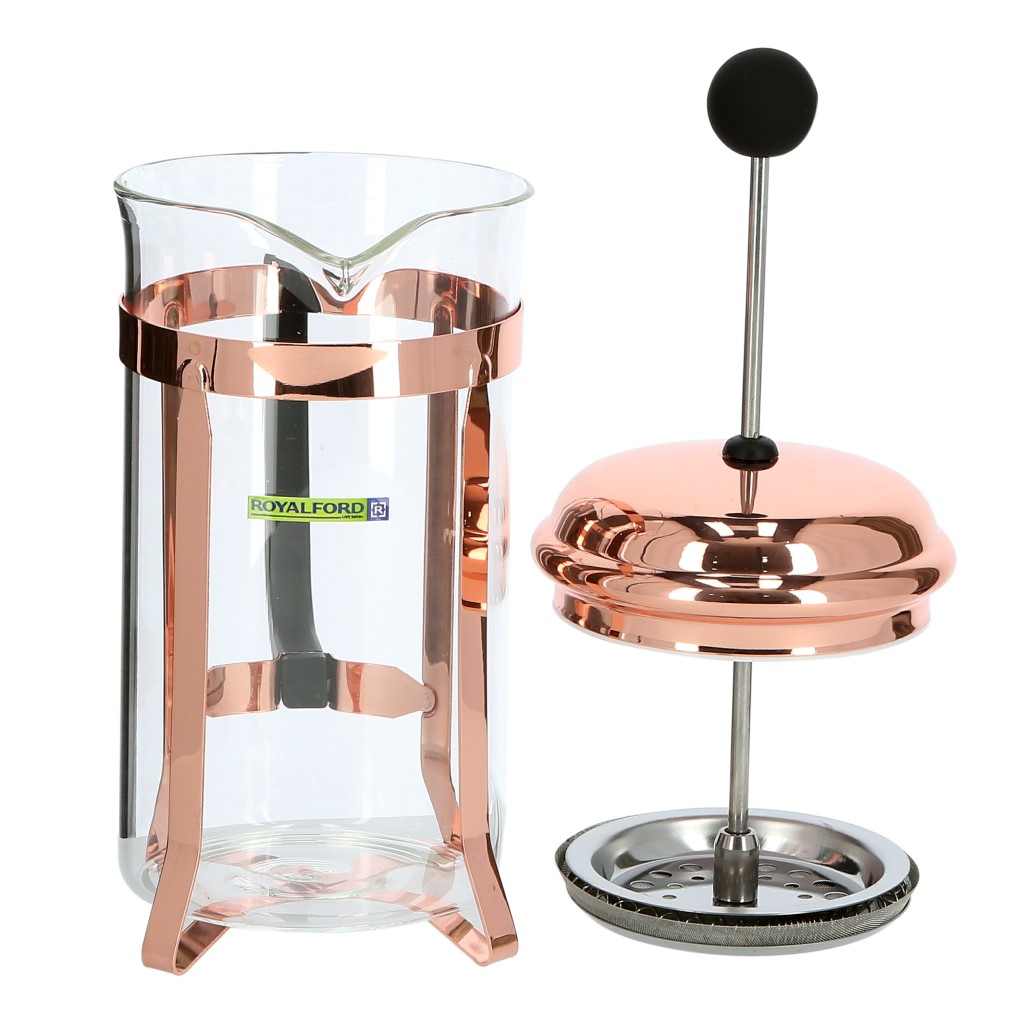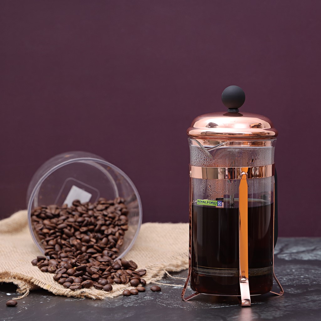 Choose Royalford …. Because You Can’t Have Great Coffee Without Great Equipment They say you should start every day on the right foot, but we believe that you should start every day with the right coffee. That’s why we engineered our luxury line of french press machine. Designed using food-grade, glass construction, this coffee pot promises unrivalled performance. The insulated carafe ensures your beverages will retain their heat for long hours but doesn’t transfer the heat to the outer shell so you won’t risk burning your hands. The French coffee press also features a wide spout and knob for easy manoeuvring and pouring (particularly for those who have trouble with arthritis or dexterity). This manual coffee maker has a capacity of 600ml, they are incredibly durable, and are even easy to clean. Its sleek aesthetics, the coffee pot with plunger makes the perfect gift set for Christmas, Mother’s Day, Valentine’s Day, or a birthday. KEEPS YOUR COFFEE HOT FOR HOURS – The glass has a vacuum space inside. This space does not let the heat escape and preserves the freshness and temperature locked inside. It keeps the liquid warm for hours, and you can enjoy the same flavor and freshness in every sip. A Cafe style coffee at your own home. PRESERVES FLAVOR AND FRESHNESS – With this coffee press you can keep your coffee hot for hours. It maintains the warm temperature with vacuum insulation. The flavor and freshness are also preserved at their best. Now you can enjoy fresh coffee with the same taste even after hours of brewing.