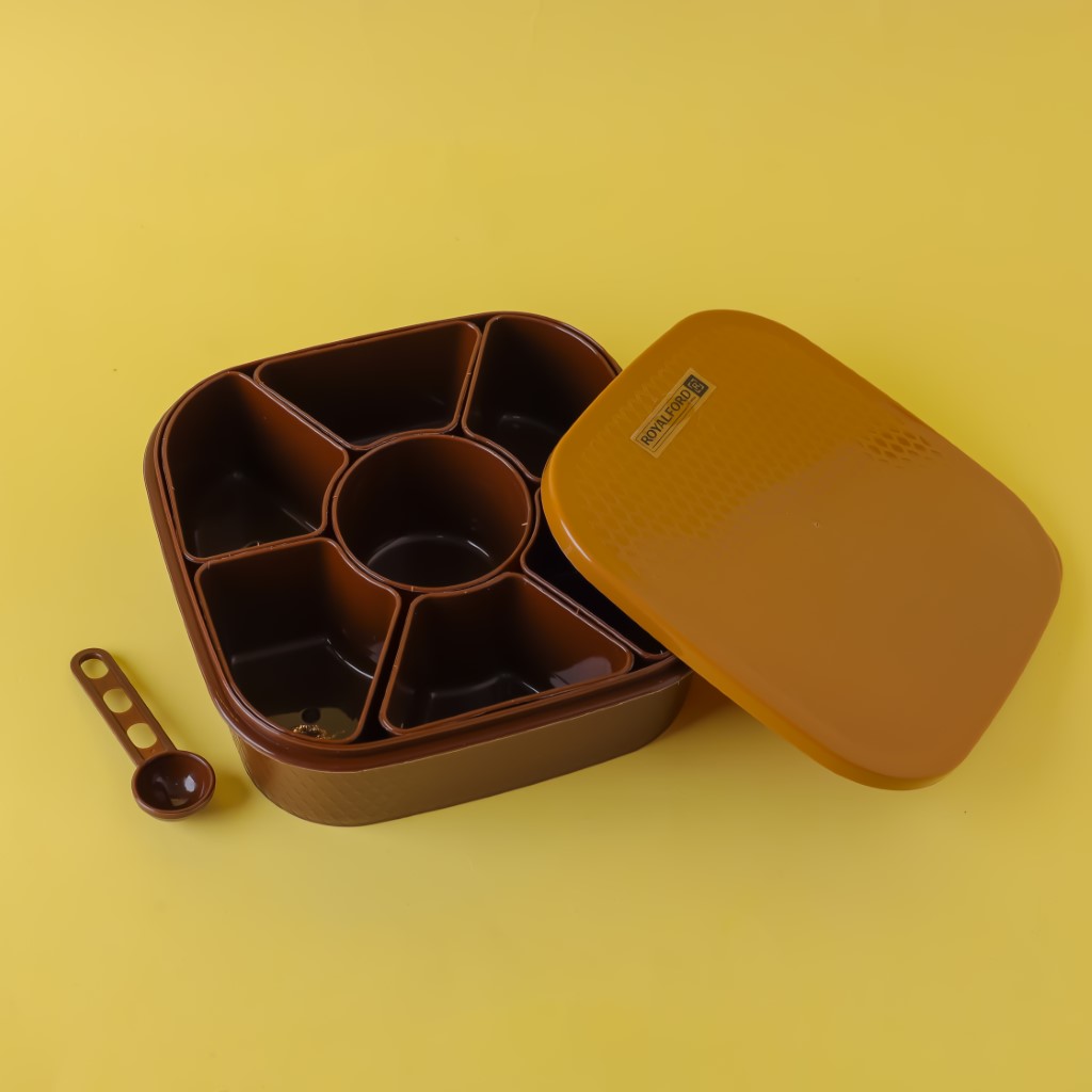 Royalford 7 Container Spice Box, Plasticware Box, RF11040 | BPA-free Spice Container | Indian Masala Daaba | Lightweight Box for Storing Spices