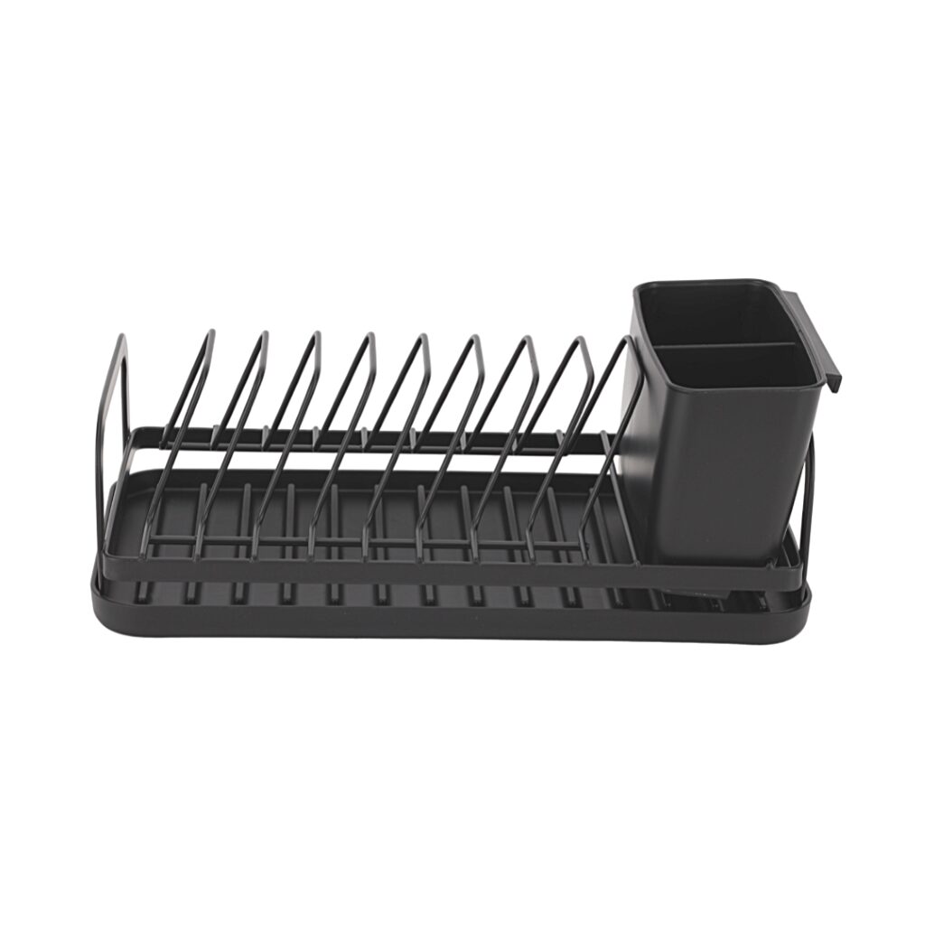 Royalford Dinky Dish Rack- RF12445/ Organizer for Kitchen to Keep Plates and Cutlery, Holds 8 Plate/ Iron Drying Stand with Drain Board, Compact and Stylish Design/ Hassle-Free Finish, for Cabinet Shelf Organizer Countertop/ Black