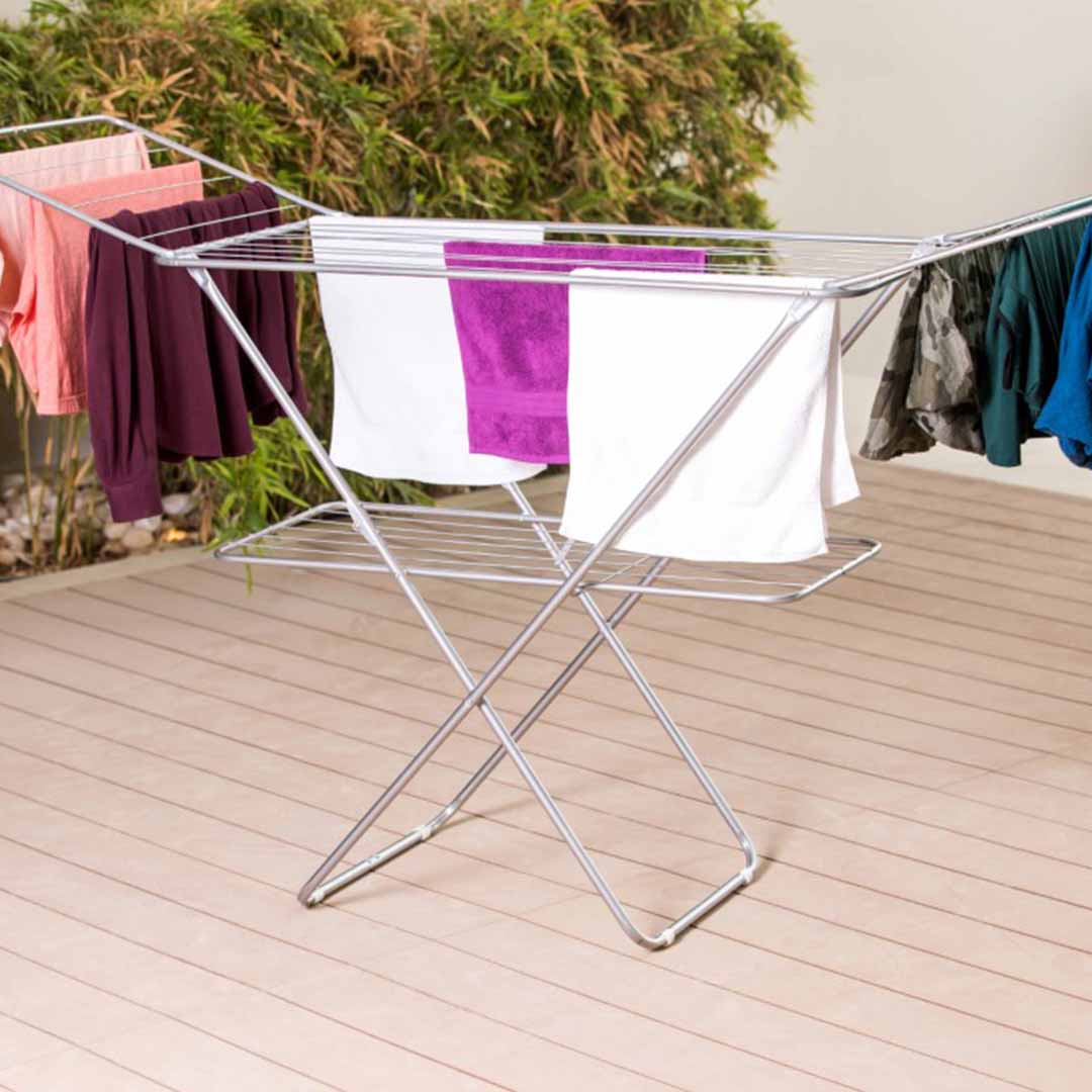 High-Quality Material – The dryer is equipped with durable, high-quality stainless steel tubes that are highly resistant to rusting and acidic rainwater. This drying rack is ideal for both indoor and outdoor use. Bottom pegs are covered in anti-slip plastic protective caps for added stability and to prevent damage to wooden flooring. Made of stainless steel with a protective coating for rust resistance, it is lightweight and portable. Large Drying Area – This drying rack is broad and spacious when fully spread out. It can hold 2 full loads of laundry; with 2 broad wings for hanging clothes or flat-drying towels, comforters, and blankets. Allotment for intimate wear, handkerchiefs, pairs of socks, and other small articles of clothing are also provided. Versatile – Clips for hanging small pieces of clothing such as socks, underwear, handkerchiefs, etc. are also provided and can be re-organized. The bottom rack is ideal for air-drying towels, stuffed toys, pillows, and the like. Compartments for pairs of shoes are easily aligned. Adjustable Wings – The wings can be easily adjusted – raised or lowered to your desired height and to meet your needs; for especially long garments, the rack height can be adjusted to avoid contact with the ground. This is also convenient for people who are experiencing back pains and have difficulties bending over. Easy to Operate – No assembly is required as you can quickly set up and fold away in a matter of seconds; keeping it compact and flat to be stored out of the way in your home when not in use. This is perfect for those with smaller living spaces like apartments, condominiums, and dorms! With this easily assembled and disassembled dryer, you can conserve storage space and better use of the space in your home. Dimensions: 128 x 54 x 3 cm ‘