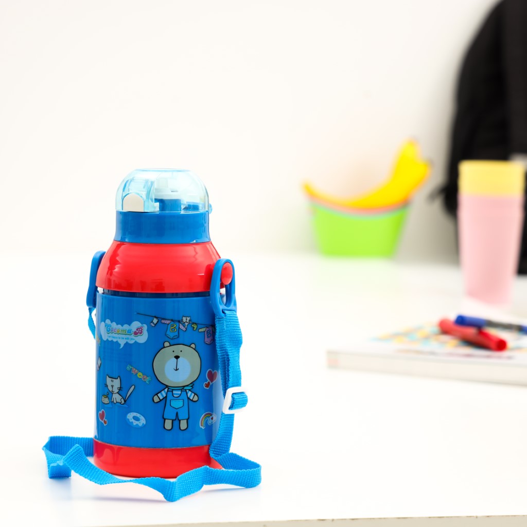 BIG DESIGN FOR LITTLE FINGERS – Our Flip Top Water Bottles are simple to use, leak-proof, indestructible, and are easily operated by the bounciest of toddlers. FLIP TOP LID PREVENTS LEAKING AND STORES STRAW – The lid flips open and closed, folding the straw as it closes. This stops the water (or juice) from leaking out and keeps the straw hygienically stored away. DRINK TO HELP YOU THINK! – We all know the importance of keeping hydrated and the effect it can have on how brainy you are. Royalford cheerful water bottles easily slot into lunch bags or any bags for that matter, whether you’re heading off out on a picnic or on your way to school. You could even practice your time tables on the way! EASY TO CLEAN – This Royalford Baby Water Bottle is having a removable lid and hence it is easy to clean as it is dishwasher safe and keep the water bottle safe from germs. Stay hydrated with hygiene. *Note – It is dishwasher safe.