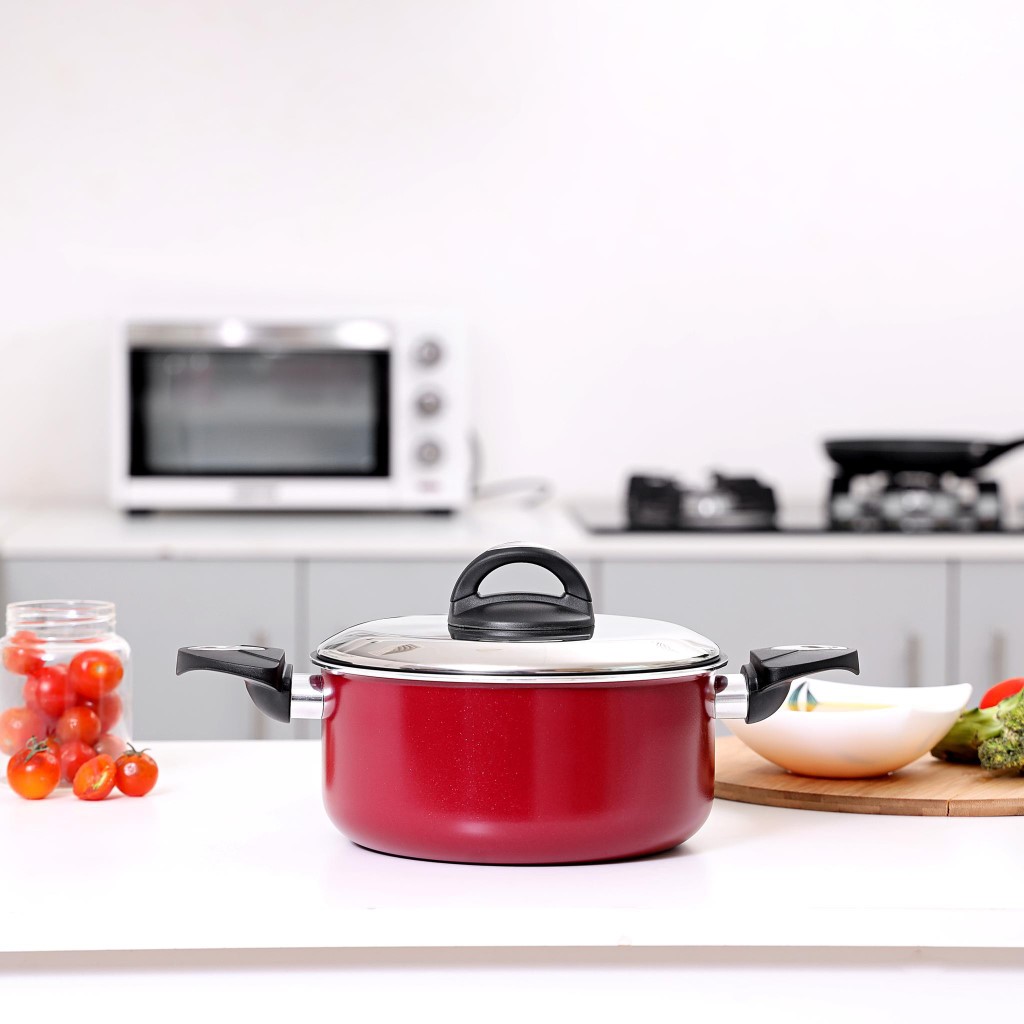 1. ROYALFORD CERAMIC CASSEROLE 22CM – A healthy way of cooking Royalford Smart Casserole Dish is a healthy alternative to traditional pots which lets you enjoy beautiful cooked meats and vegetables. 2. NON-STICK STYLISH CASSEROLE FOR ULTRA COOKING PERFORMANCE – Enhance your kitchen with the Royalford Casserole Dish, featuring unique non-stick professional-quality cookware designed for optimum cooking performance at home. Enjoy meals without food sticking to the pan during cooking. With less oil or residue, they are delightfully easy to clean which is ideal for active cooks and busy kitchens. 3. MULTIPLE HOB TYPES – It features an induction base, making it suitable for use on most hob types. Suitable for multiple cooking sources it heats up quickly & evenly, so you don’t get the ‘hot spots’. 4. EFFICIENT AND CONVENIENT COOKING – This stockpot is equipped with a tempered glass lid with built-in steam vent for precise, efficient cooking whilst soft-touch, stay-cool handles, allowing for comfort and control when handling. 5. COMPACT LID – With close-fitting toughened glass lids, you can control your cooking to ensure no messy spills and complete cooking convenience.