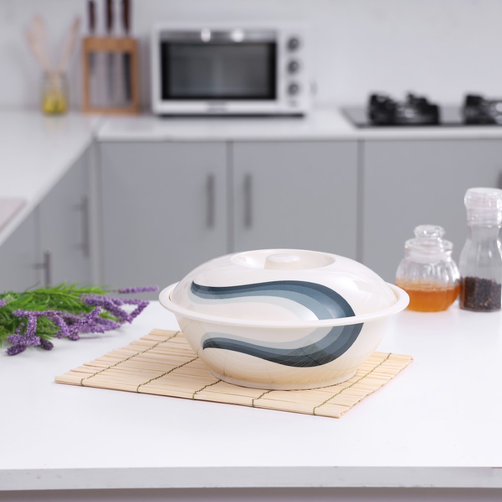 This Beautiful 10″ Rice Bowl with a lid holds a large capacity and it is perfect for diet control to hold rice, soup, cereal, salad, pasta, snacks, ice cream, or what have you!. This Beautiful Artistic Bowl is made of high-quality melamine material. Perfect for big/small dishes such as muesli, soups, or desserts: in this round bowl, delicacies are always served in a stylish manner – Whether it is every day or at dinner in a convivial atmosphere. The deep bowl can be filled to one’s preference and their country style design is always a charming eye-catcher. The bowl is also suitable for use when catering thanks to its characteristics. Among other things, it can be carried with one hand and can be stacked to save space. EASY TO STORE – It comes with the stackable design which takes less space in your kitchen or on table that will avoids clutter making it more organized storage.