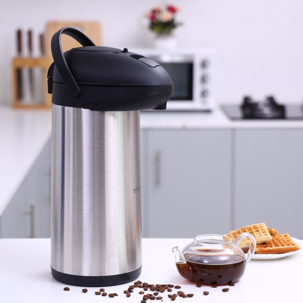 Keep hot drinks hot and cold with the Royalford 5L Air Pot, great for outdoor sporting events, family gatherings, and other occasions that draw a crowd. Simply fill the air pot with a drink of your choice, place your mug under the spout and press the button. With the double-walled vacuum-insulated glass liner, drinks such as coffee, hot chocolate and iced tea can be kept hot or cold for hours, so you can enjoy them can enjoy at the perfect temperature and the taste of your drink at temperature and taste. The 5-litre stainless steel air pot offers space for large crowds and can hold large cups of coffee. Just press the dispense button on top of the air can. You can fill it up and take it with you on the go without worrying about spilled material. Simply cleaning and filling the large-cap makes it easy to clean and fill. It is preferred to use on social occasions, restaurants, hotels, and other commercial food service establishments. This vacuum flask is designed to meet the durability and performance needs of food service professionals. Popular choice because this commercial unique dispenser keeps beverages hot and fresh. Dimensions: 19.8 x 19.8 x 45 cm ’ ‘ ‘