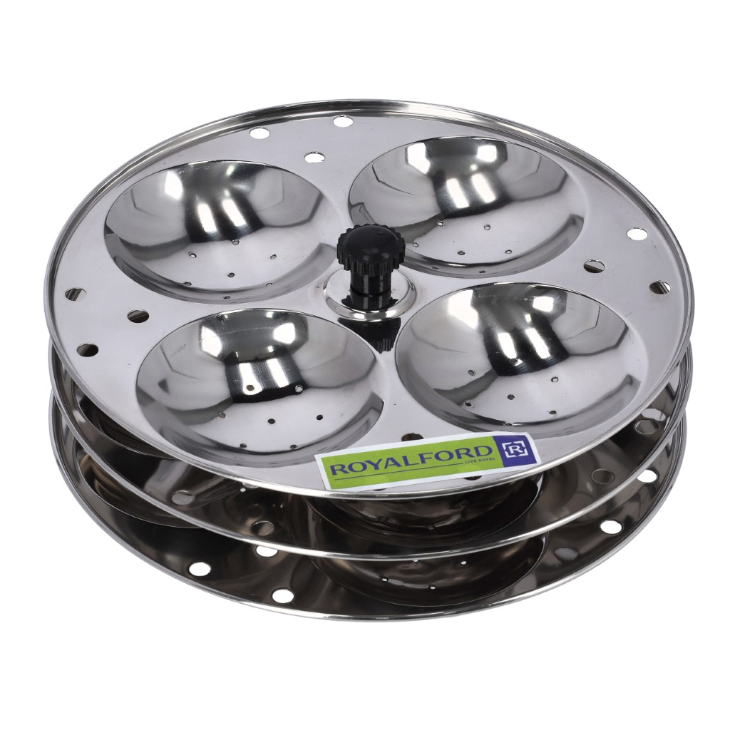 Royalford Stainless Steel Idly Stand- RF9876| Multi-Sectional Design with 3 Racks and Makes 12 Idlis, Mini Hole Mechanism for Soft and Perfect Idlis| Premium-Quality, Food-Grade, Healthy and Hygienic| Durable Construction with Balanced Heat Flow| Silver