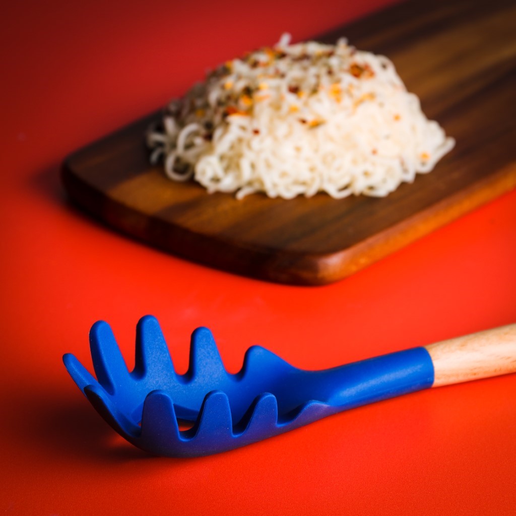 Silicone Spaghetti Server, Wooden Handle, Multi Pasta Server, RF10647 | Handle with Measurement Holes for Cooking and Serving Spaghetti | Heat Resistant Non-Stick Spaghetti Spoon