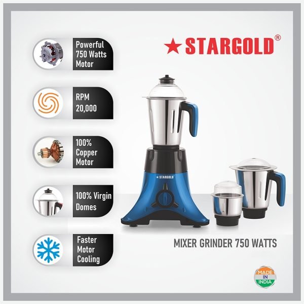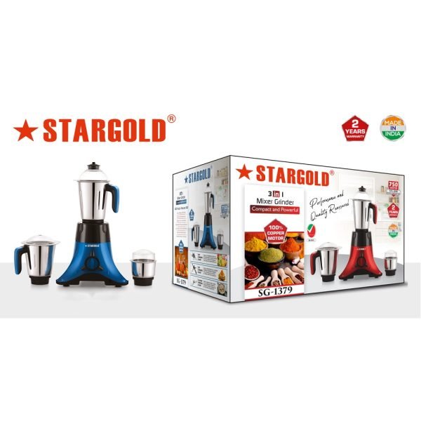 STARGOLD 750 Watt 3 In 1 Mixer Grinder For Multi Purpose Use With Stainless Steel Jar