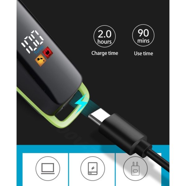USB QUICK CHARGE & CORDLESS: The hair trimmer can be charged through the Type-C port using a USB cable. The charging time is about 1.5 hours, and the battery can last more than 2 hours after being fully charged when the trimmer needs to be charged.